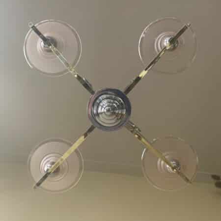 Plafondlamp Hanglamp Lamp 4 arms met gele kelken Verchroomd jaren 30