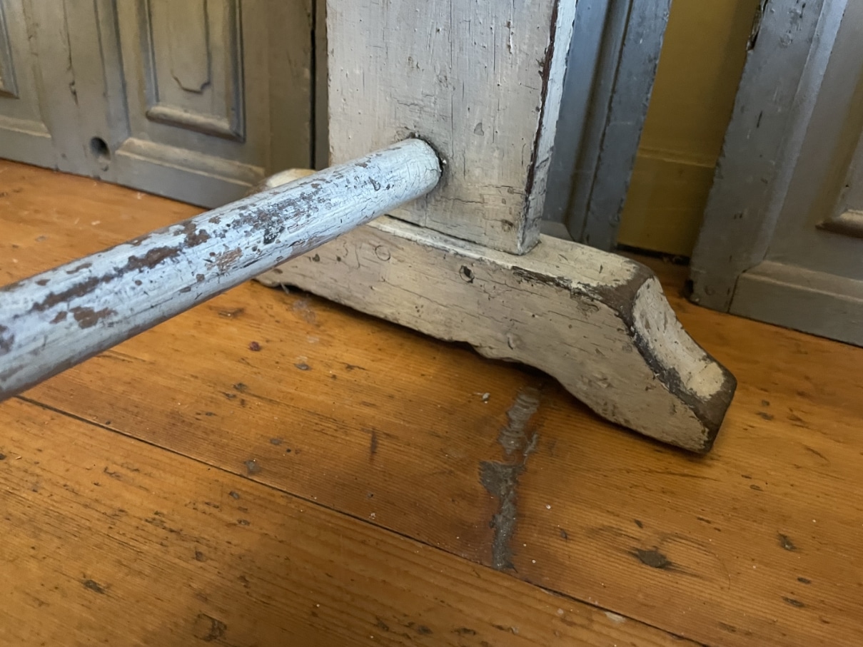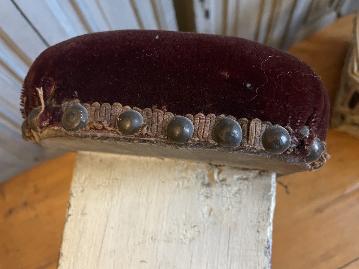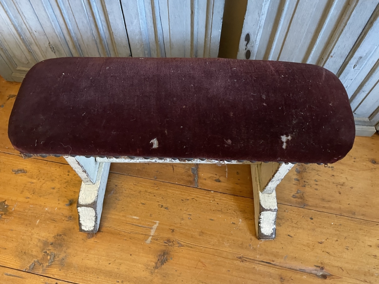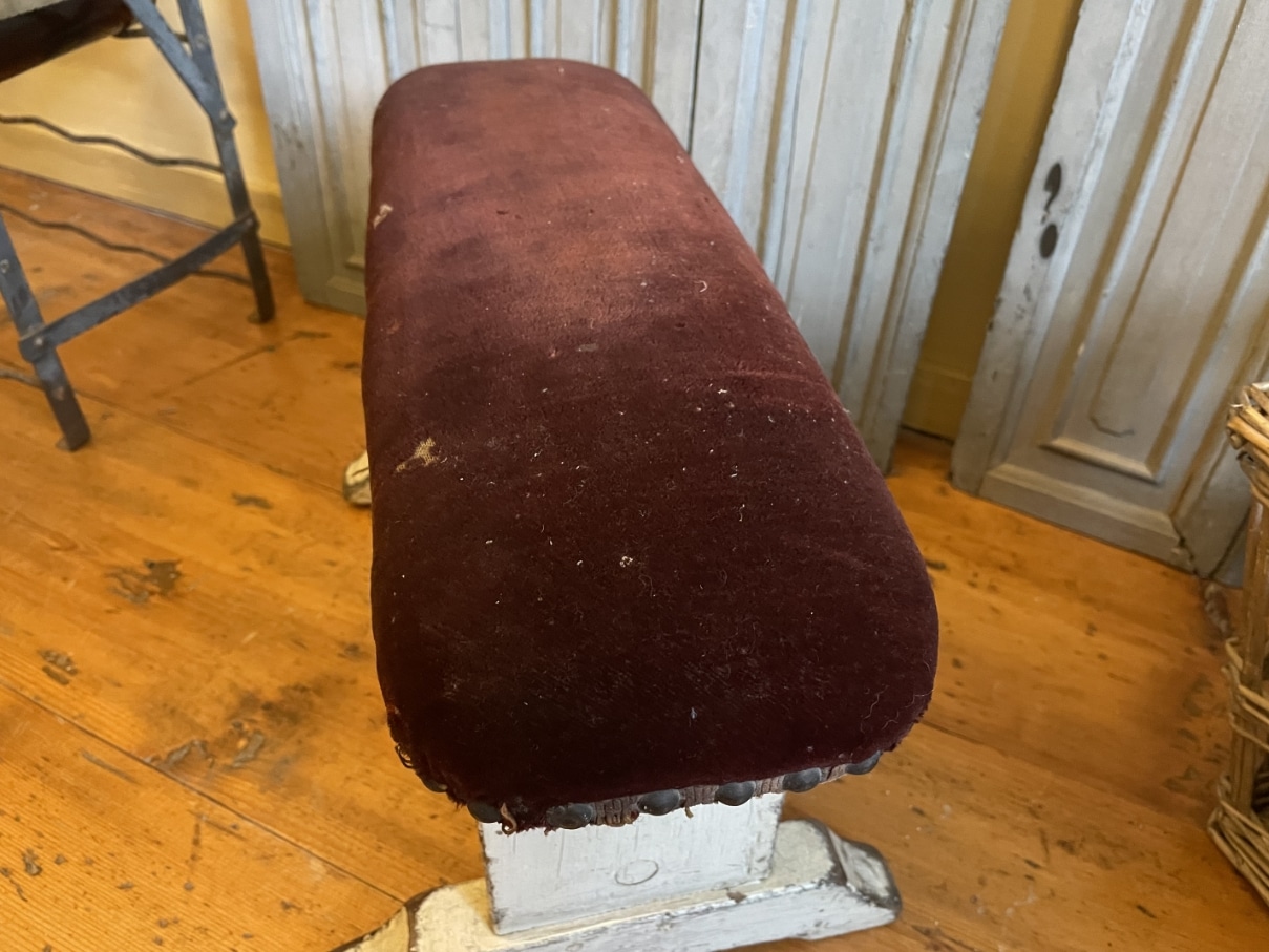 Dit bankje werd gebruikt bij een muziekinstument of voor een stoel om je voet/voeten op te zetten als ondersteuning.