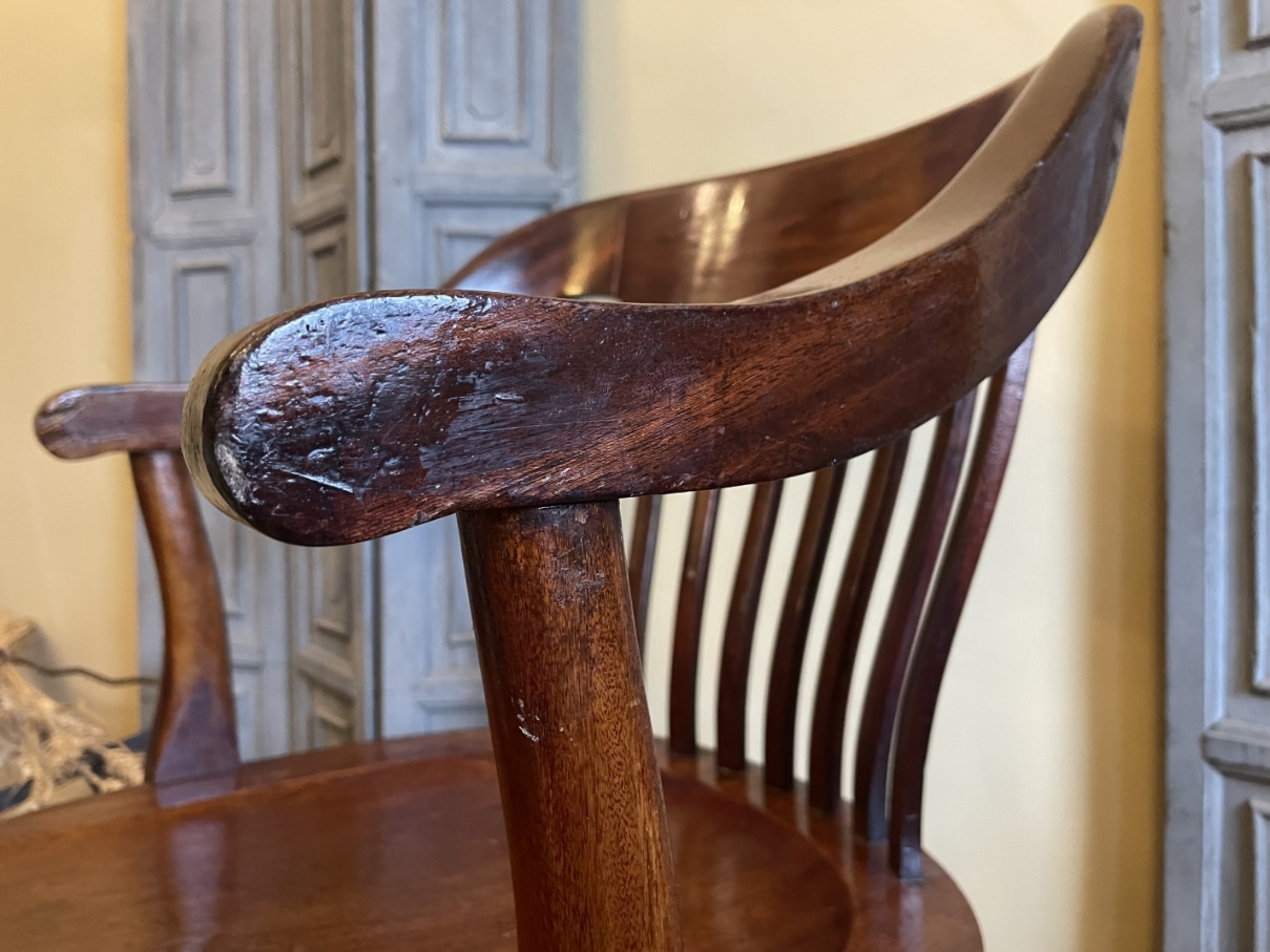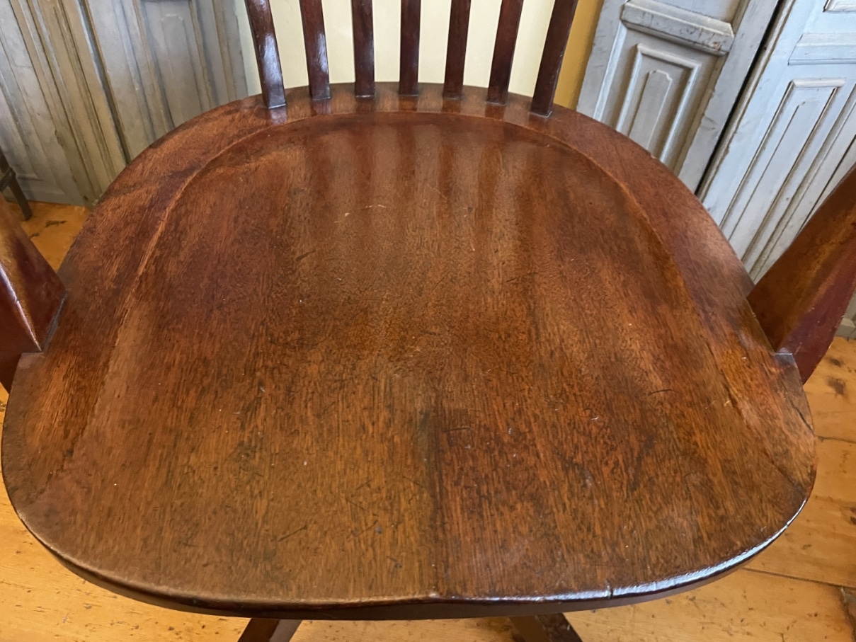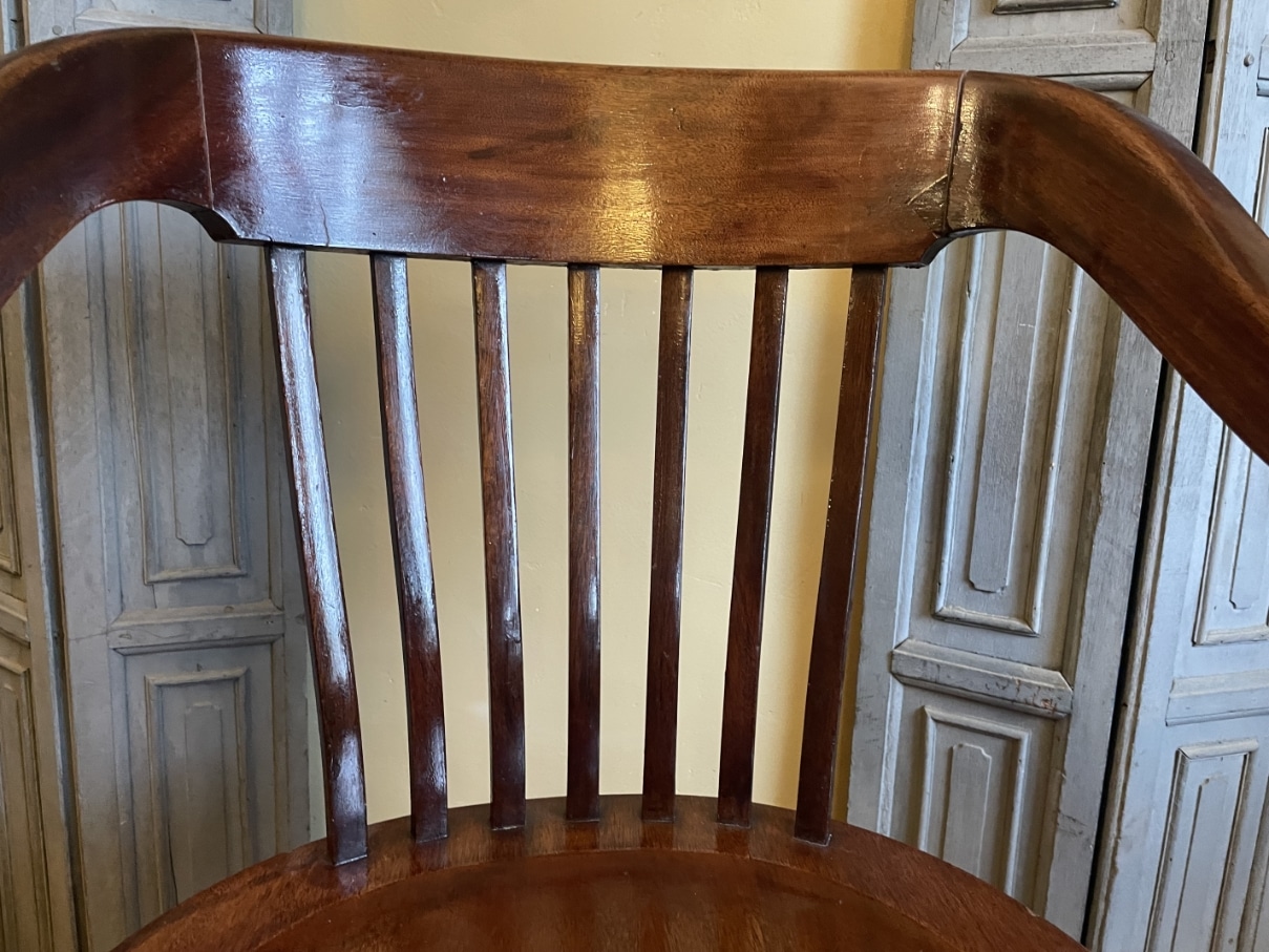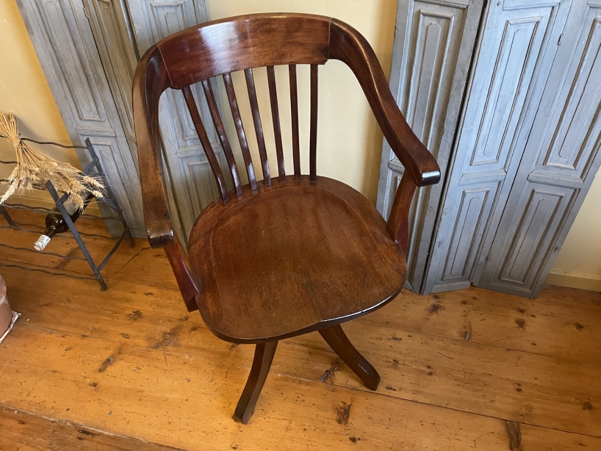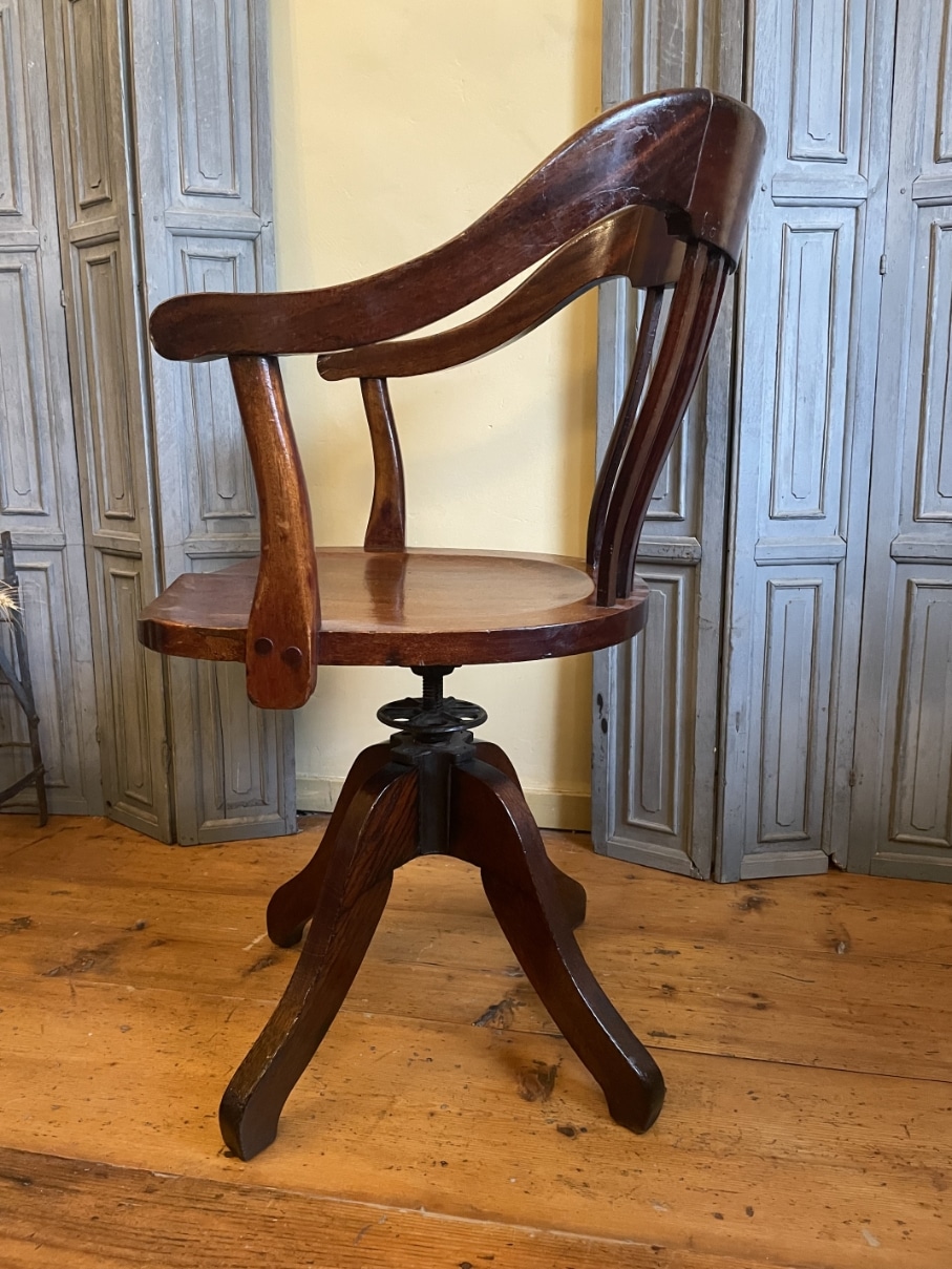 Een beetje sjieke draaistoel of bureaustoel uit de art deco periode van Frankrijk uitgevoerd in Mahoniehout.met een ijzeren draaisysteem.
