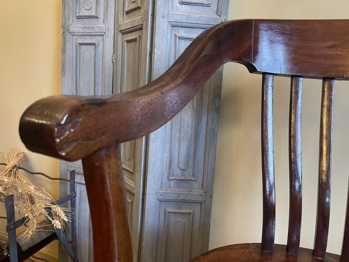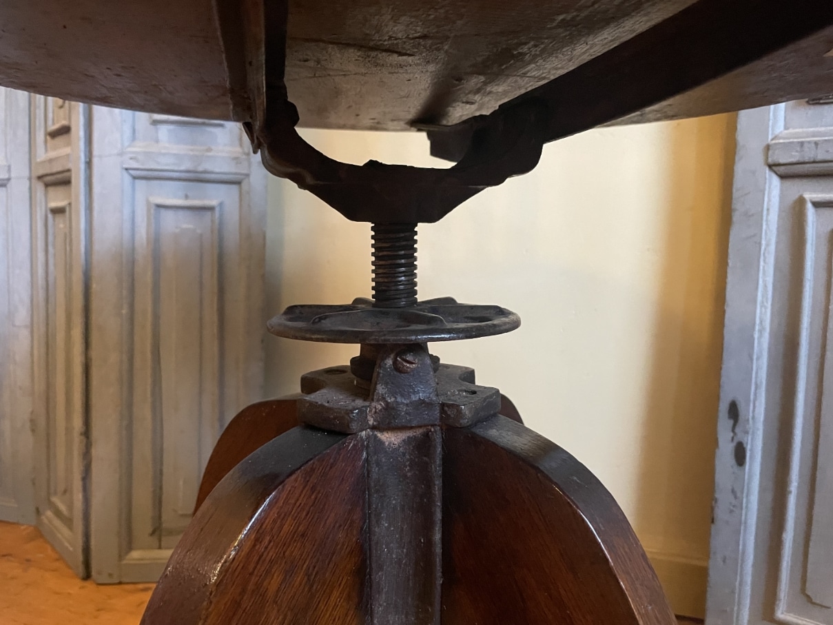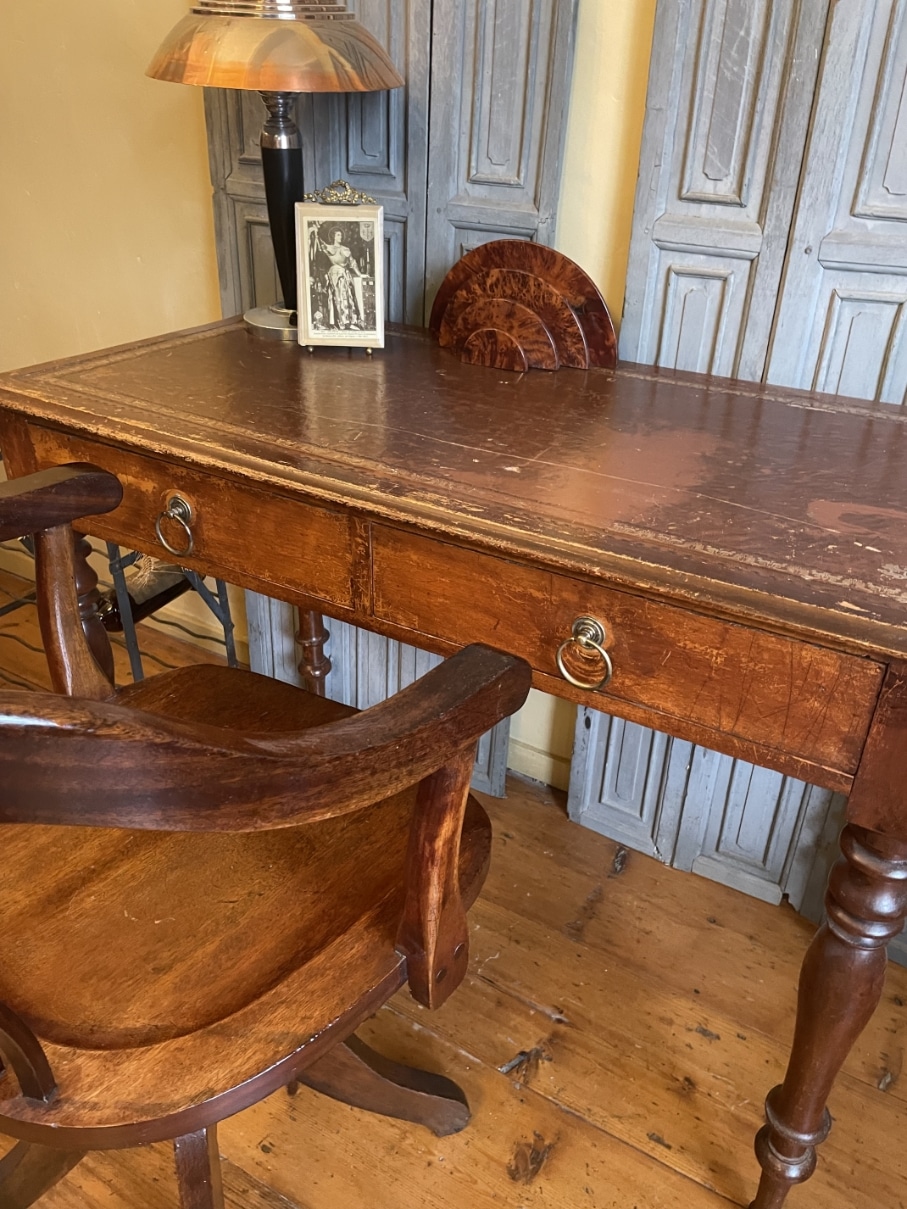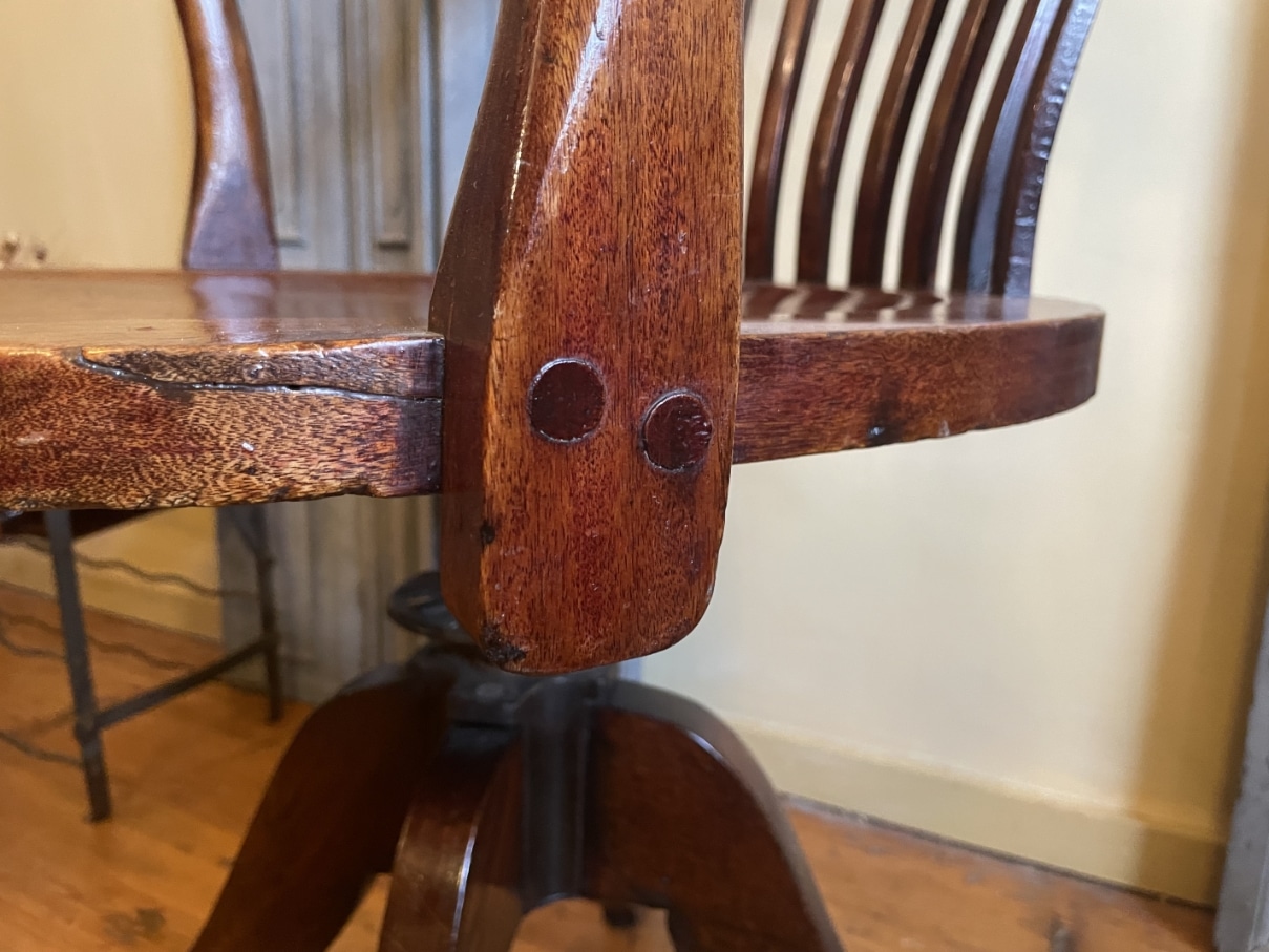 Een beetje sjieke draaistoel of bureaustoel uit de art deco periode van Frankrijk uitgevoerd in Mahoniehout.met een ijzeren draaisysteem.