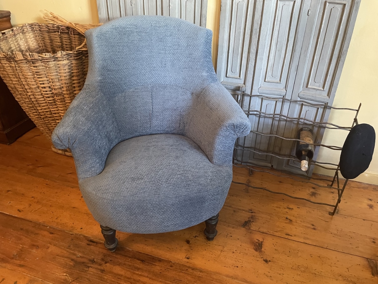 De stof is een lekker zachte blauwe meubelstof wat ook heel mooi bij deze stoel past.
