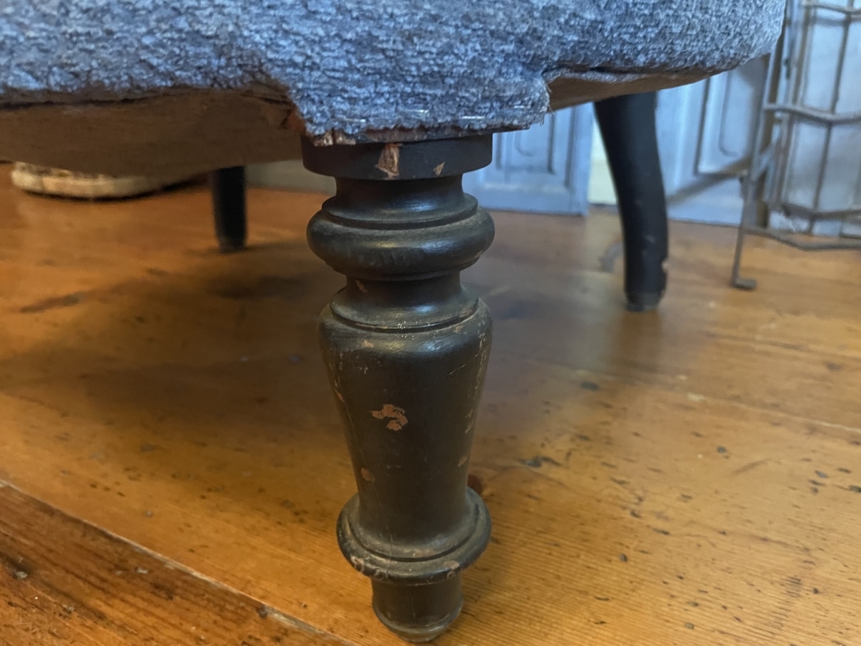 De stoel is opnieuw gestoffeerd door een meubelstoffeerder.