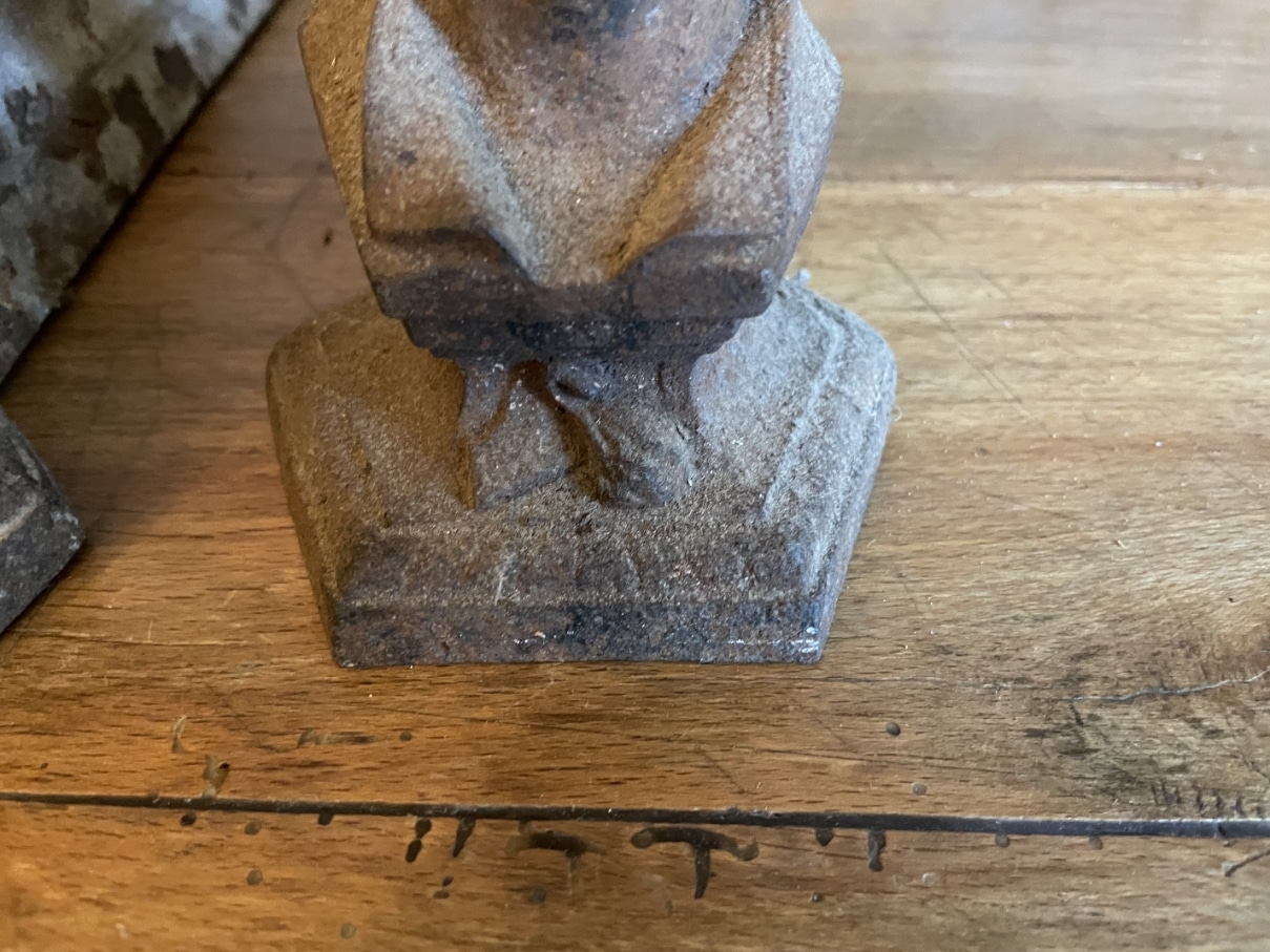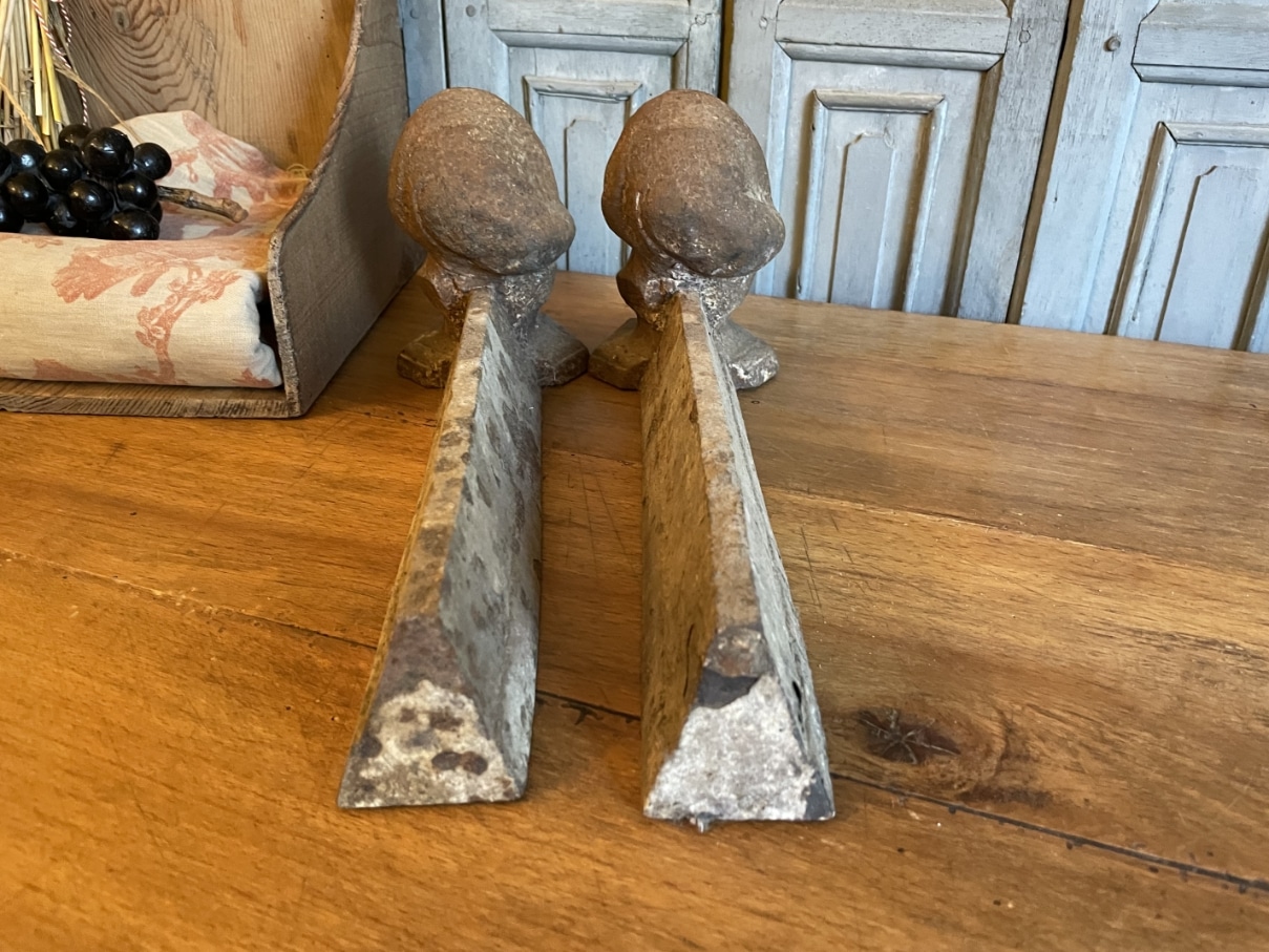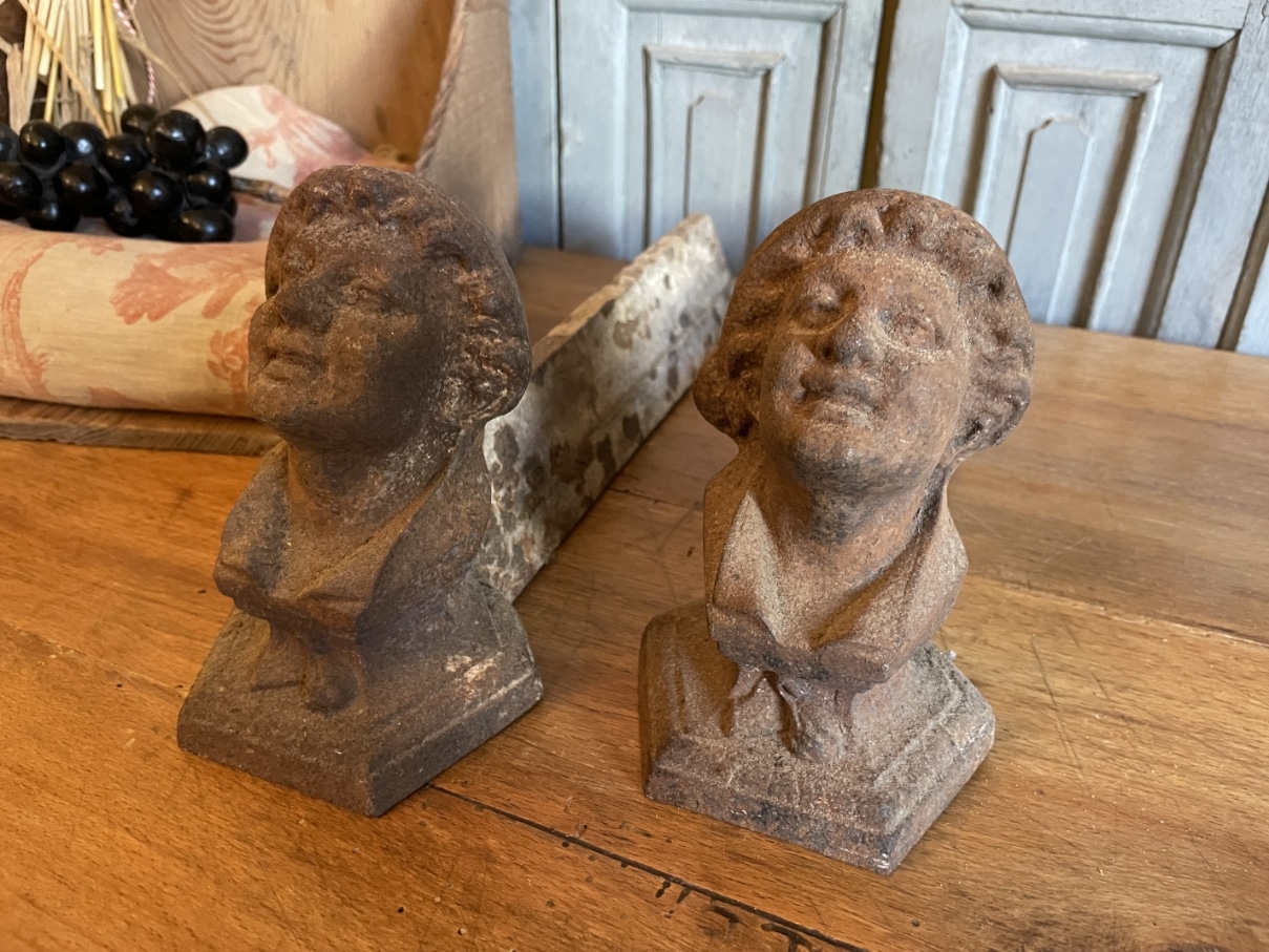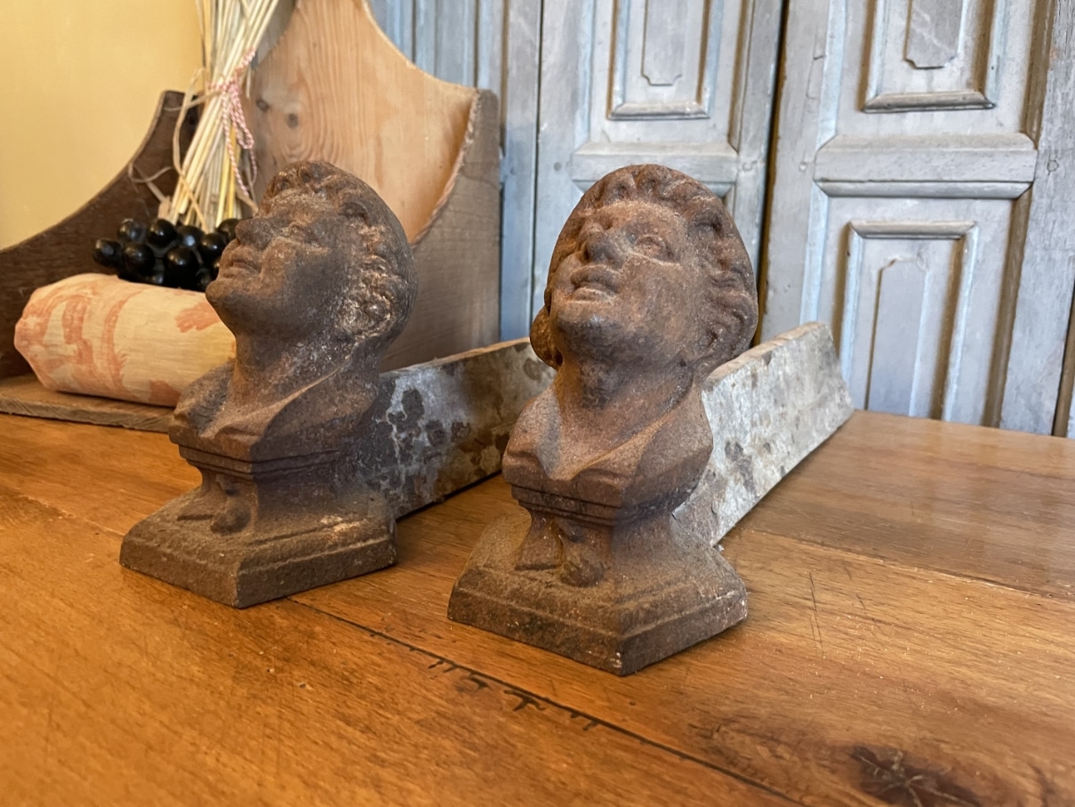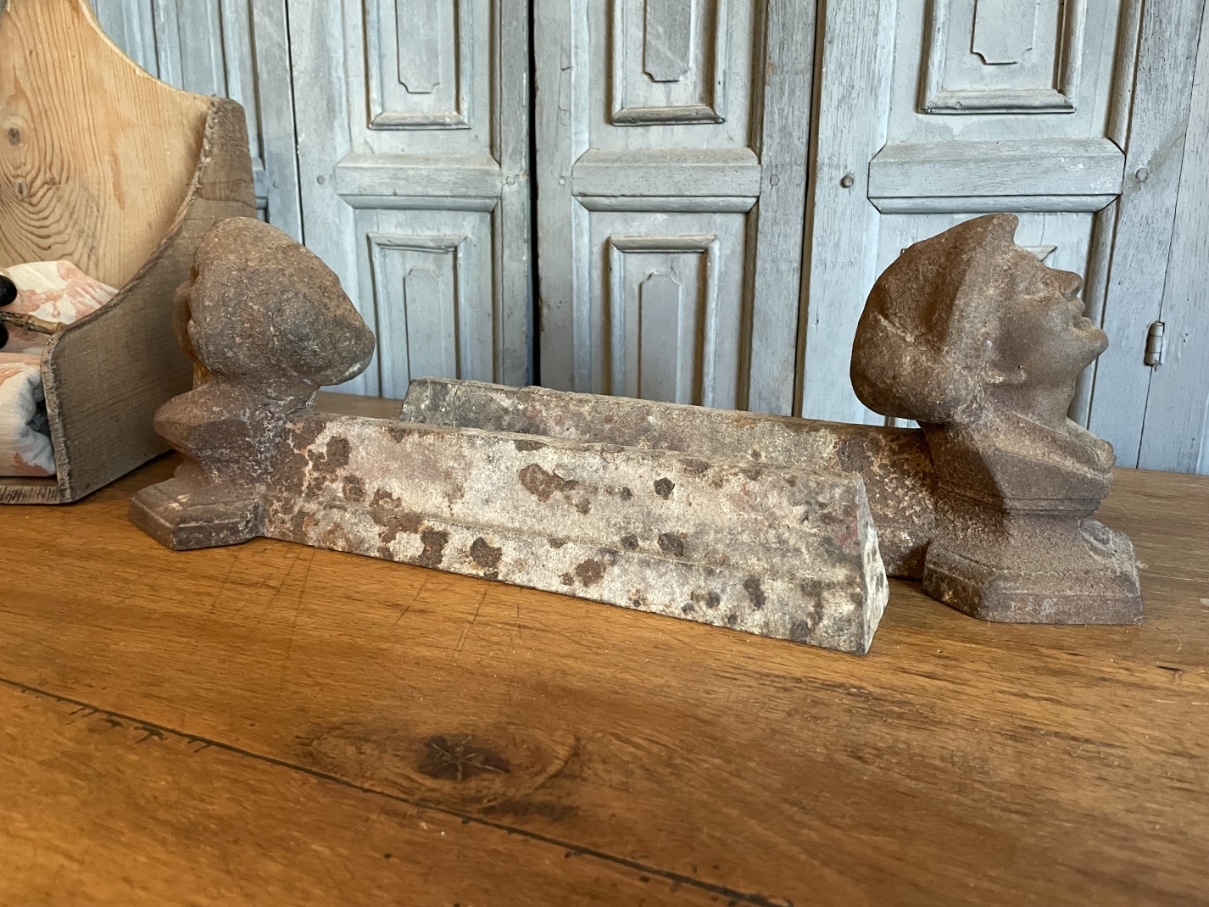 Een set omhoog kijkende dames als haardijzers of vuurbokken zoals ze ook worden genoemd.