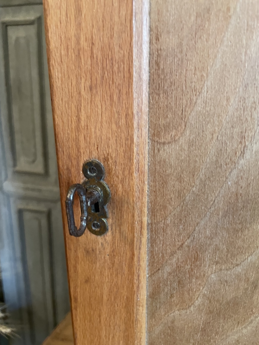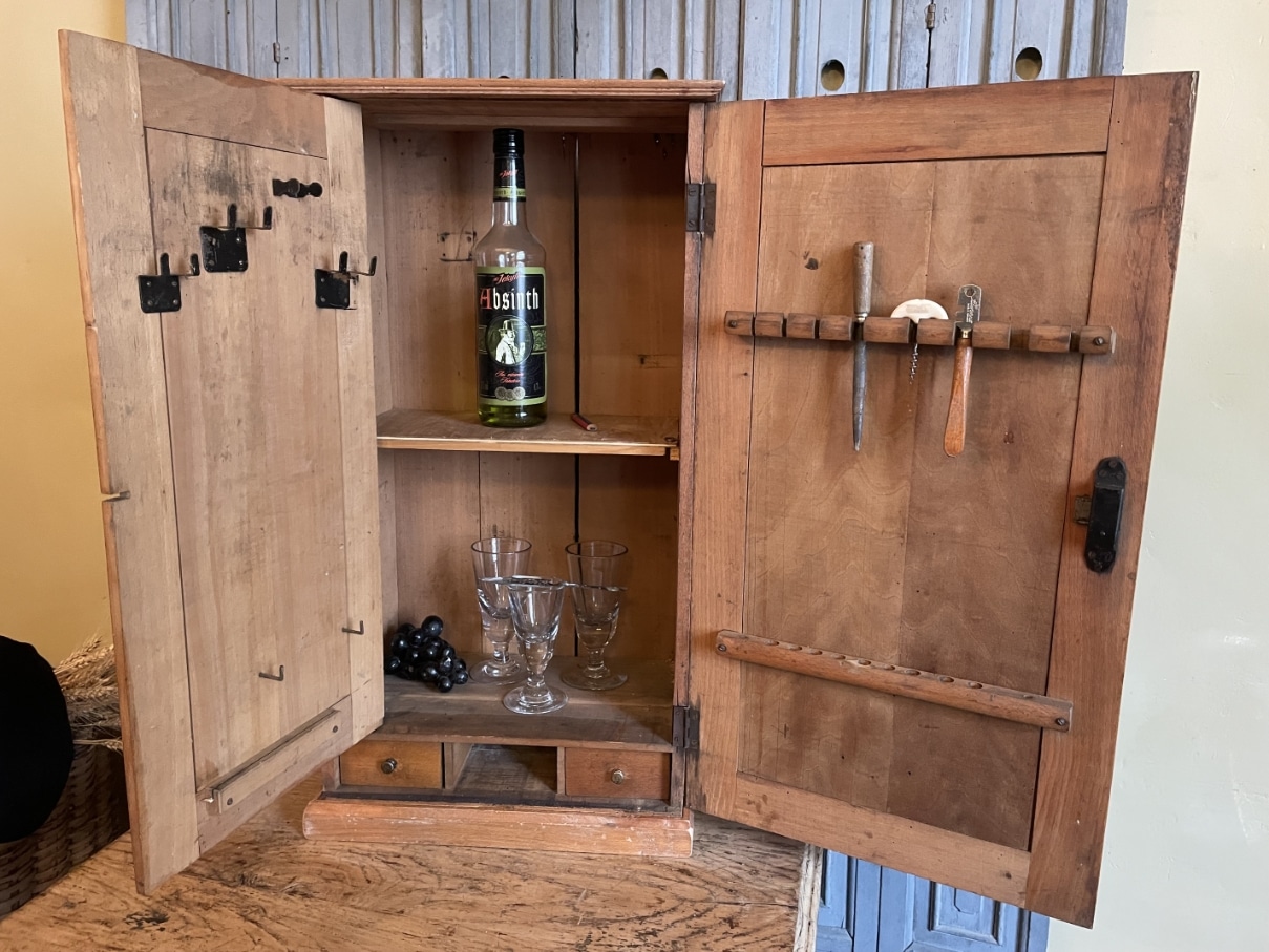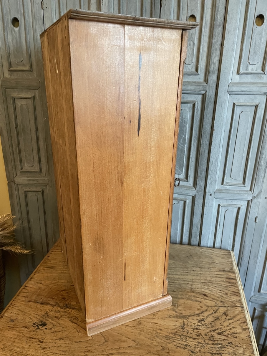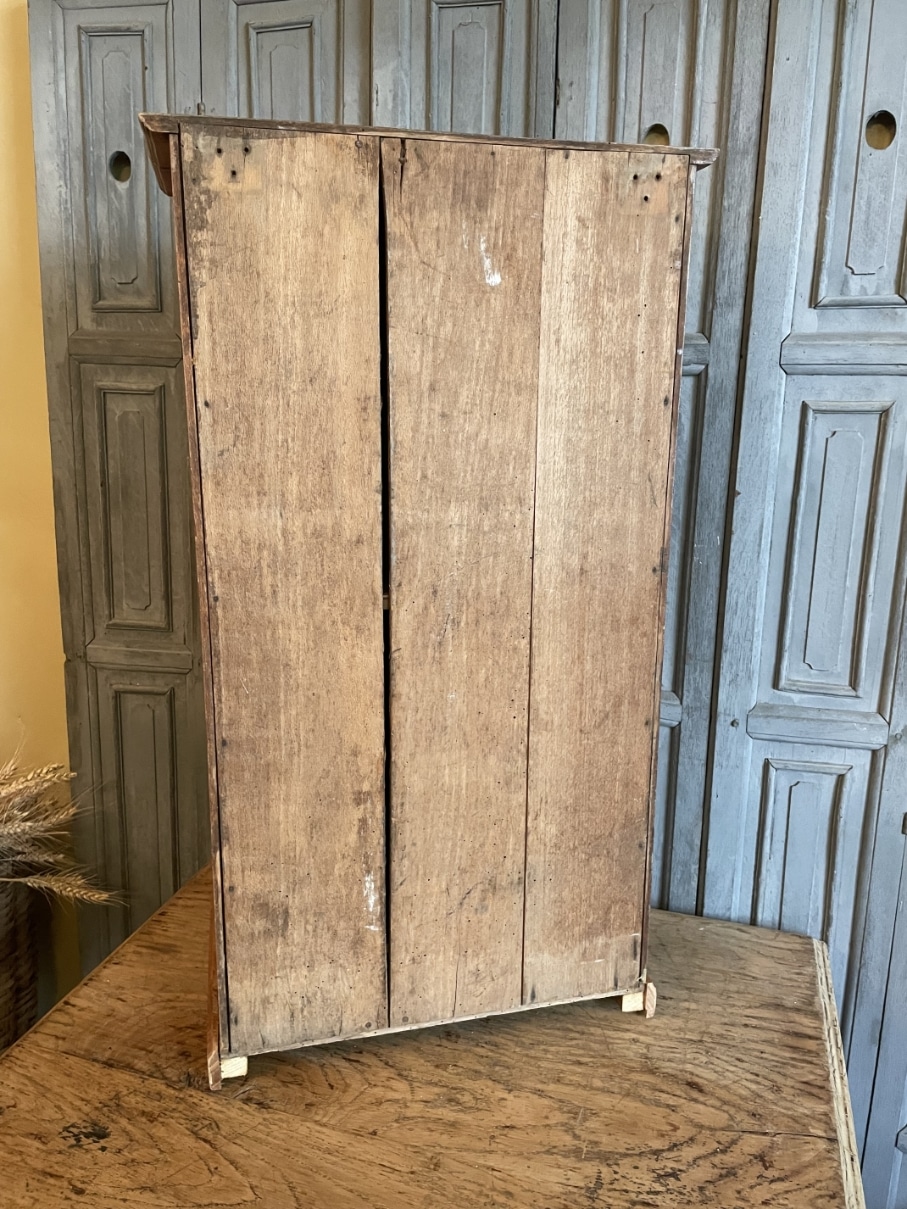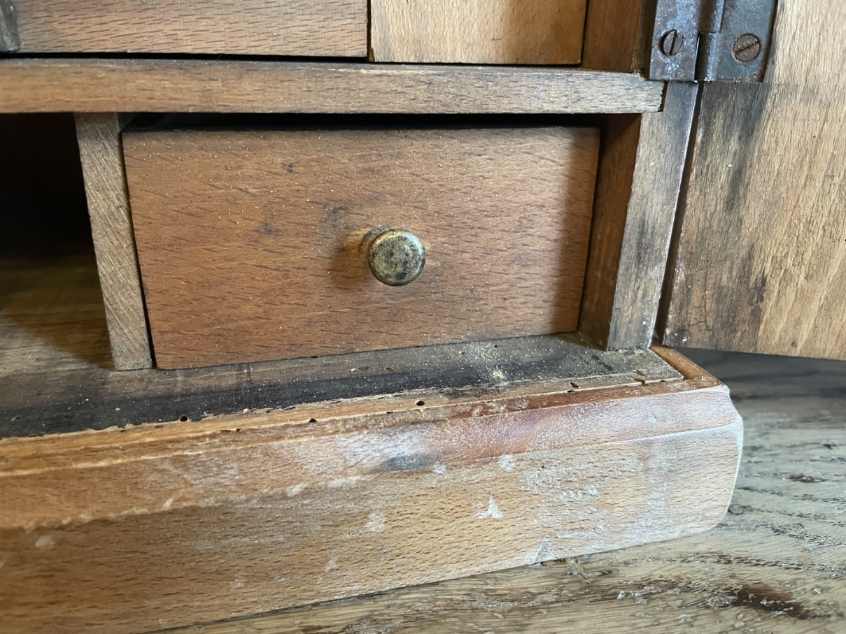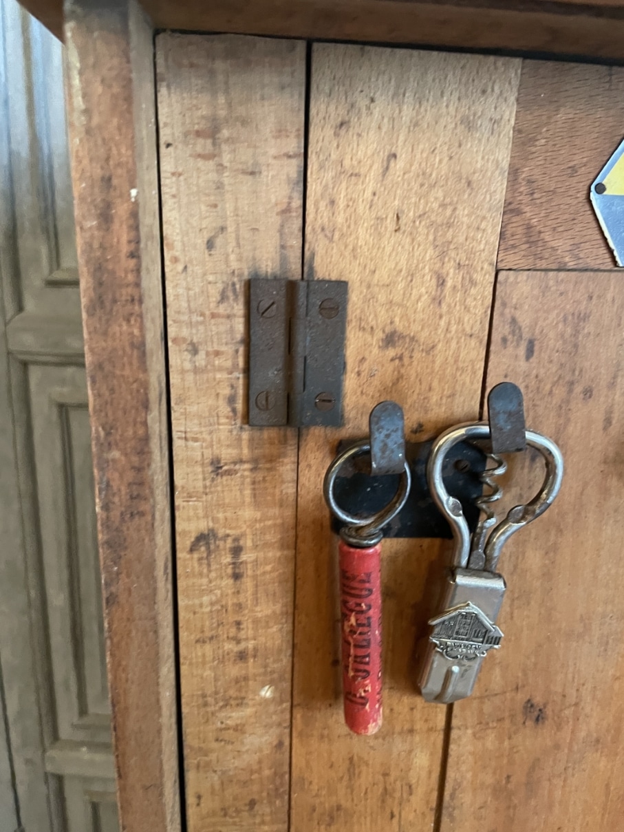 Een uniek object is dit gereedschapskastje wat uit de garage van De Peugeot Fréres komt. Waar het kastje ook vol heeft gehangen met klein gereedschap gemaakt van het mooie beukenhout.
