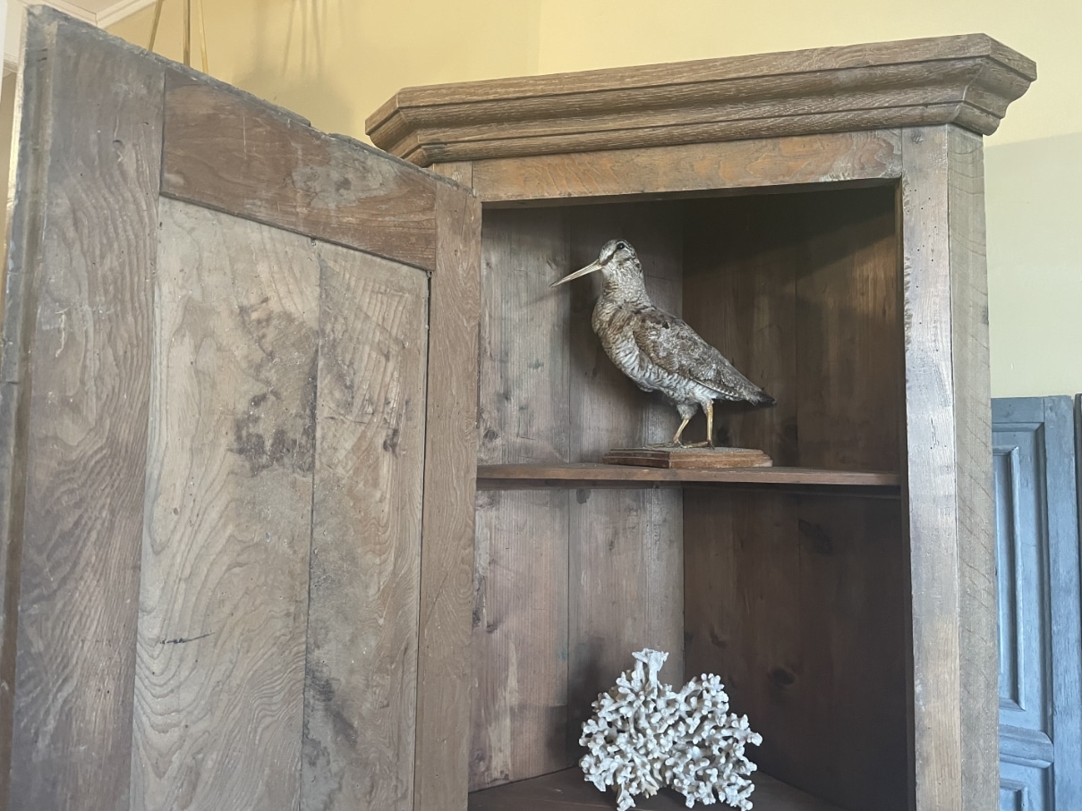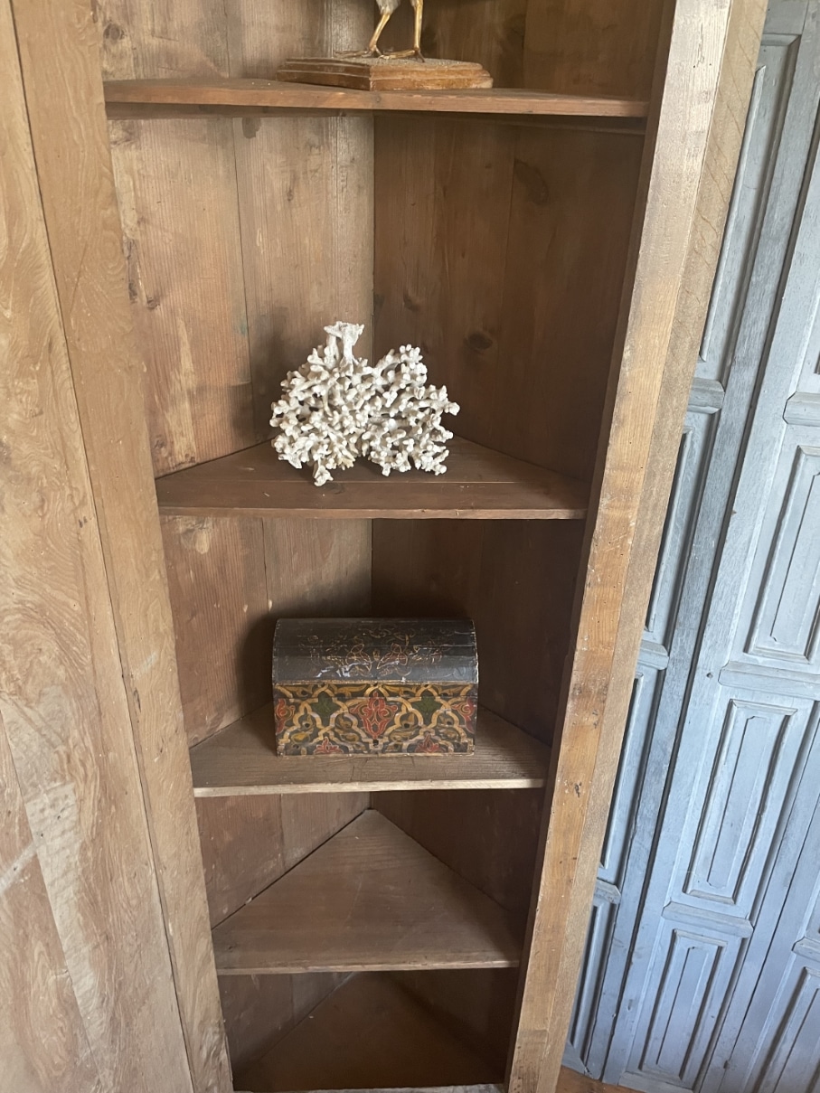 Een schitterende hoekkast uit halve wege de 19e eeuw van Frankrijk.