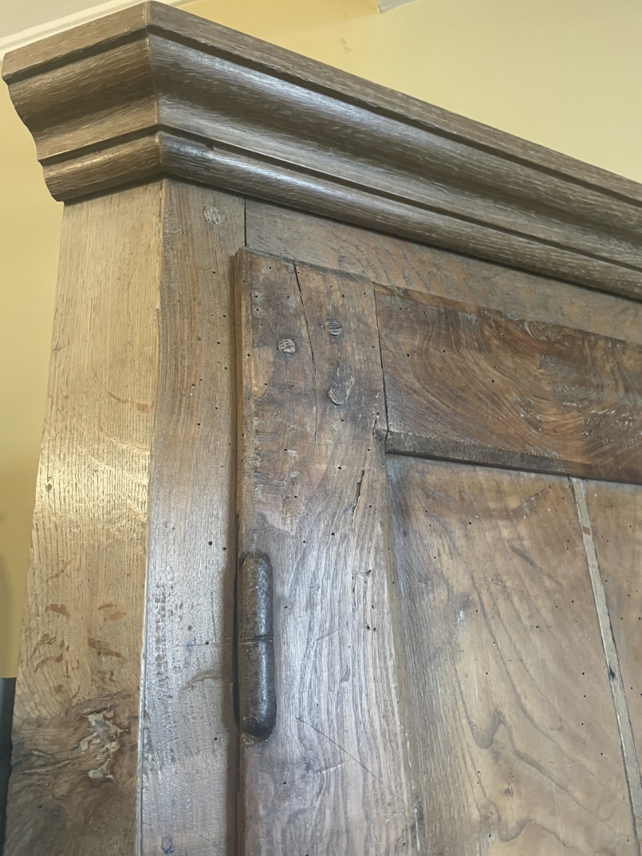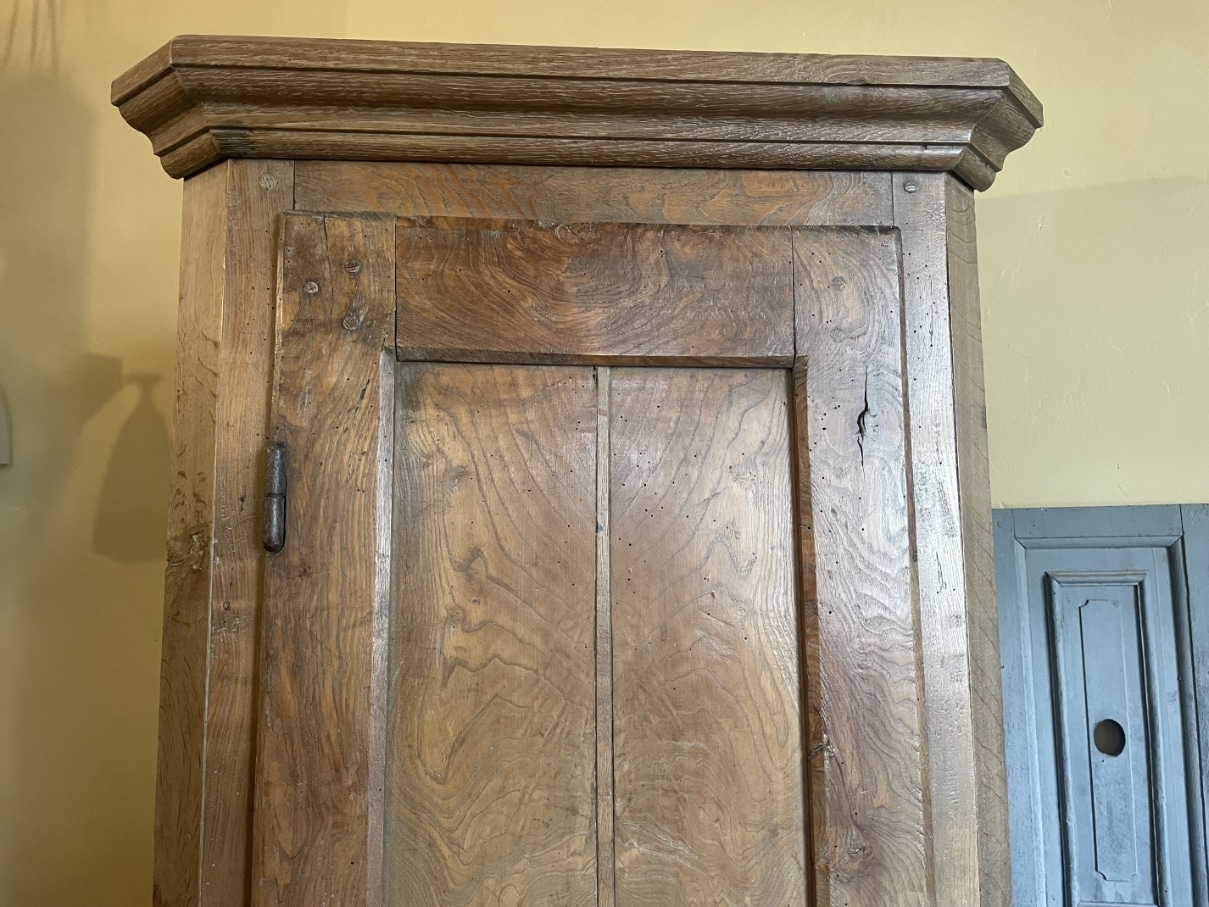 De kast gemaakt van notenhout en eiken en heeft een warme mooie uitstraling.