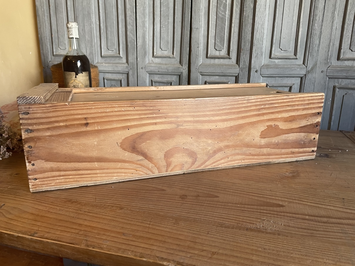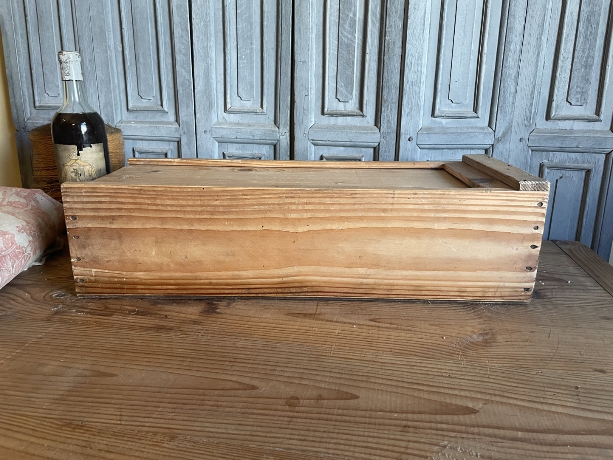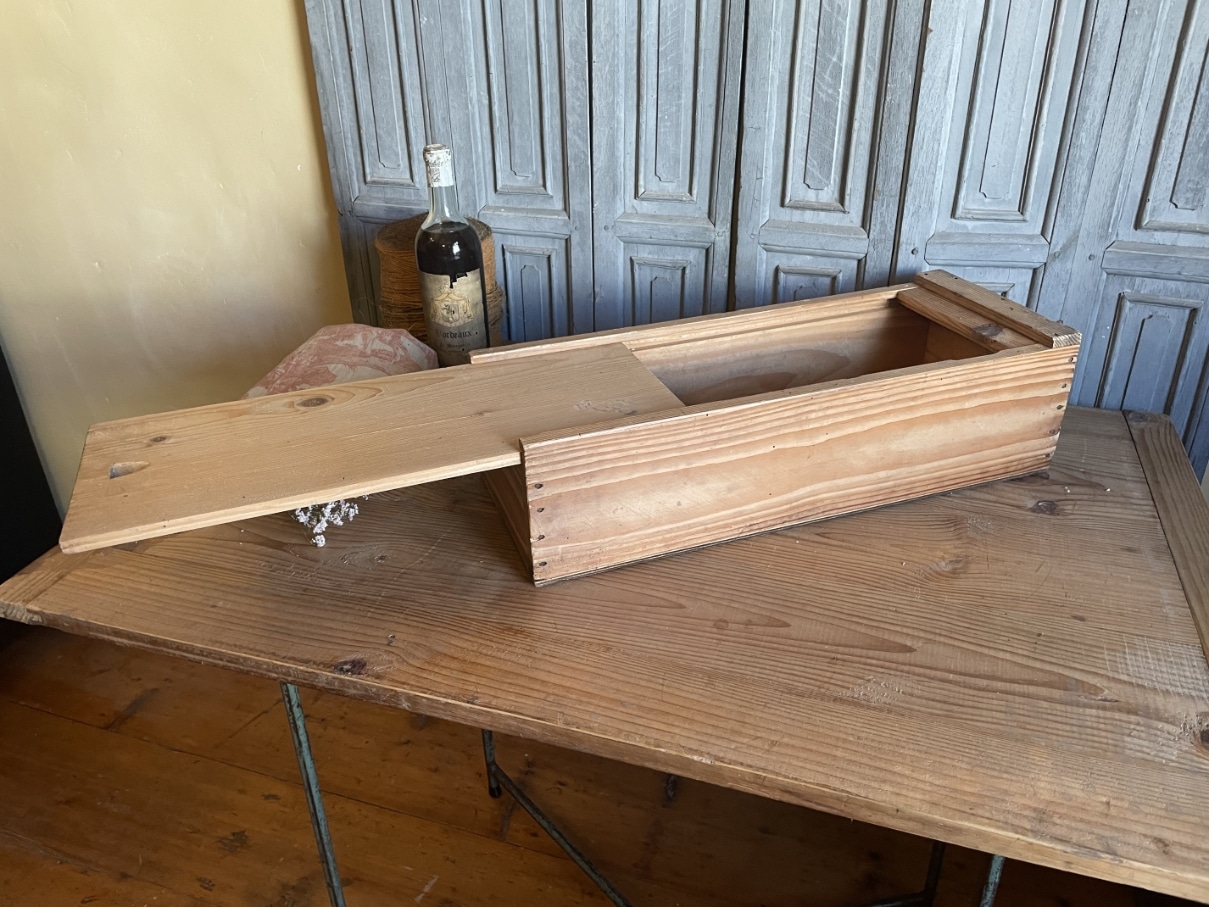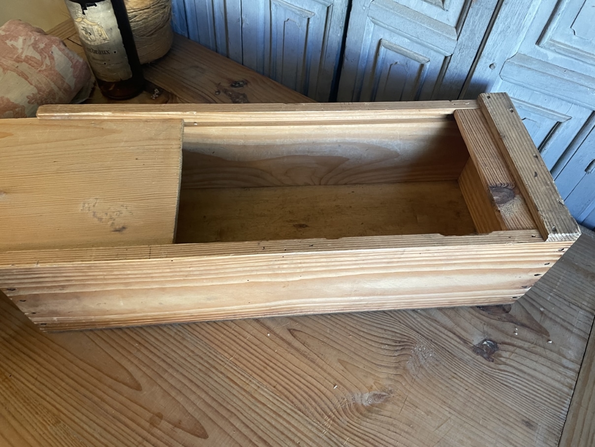Leuke houten kist met schuifdeksel.