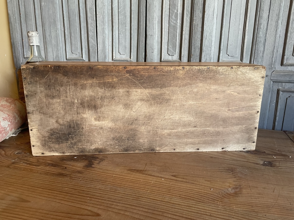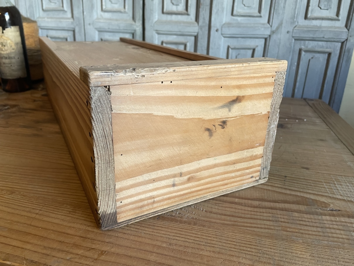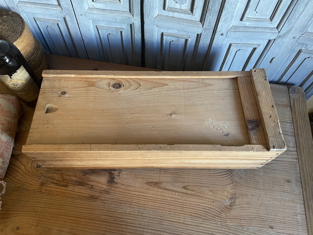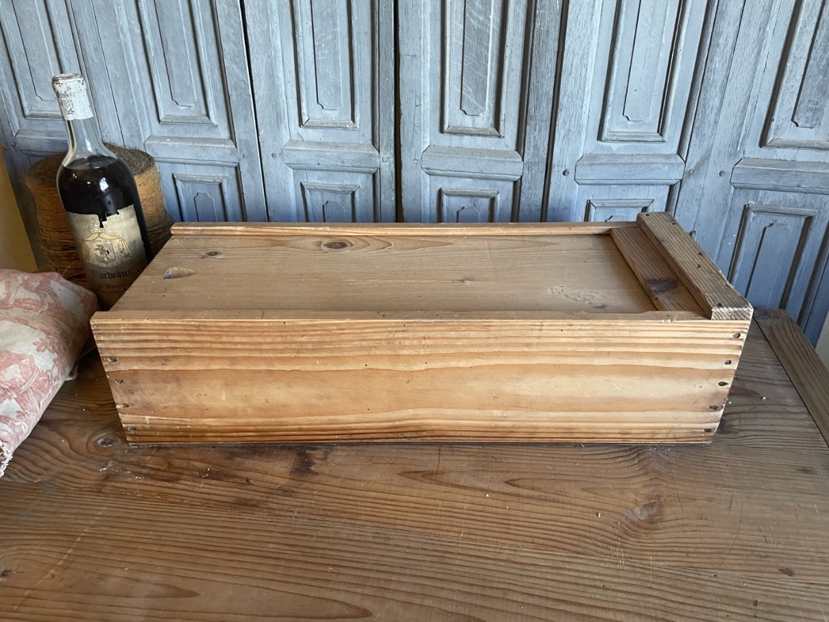 Leuke houten kist met schuifdeksel.