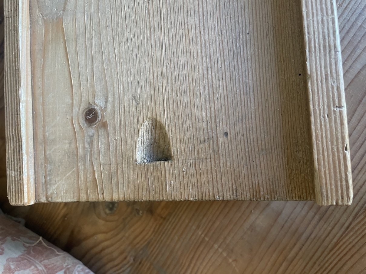 Het kistje heeft een inkeping in de deksel.