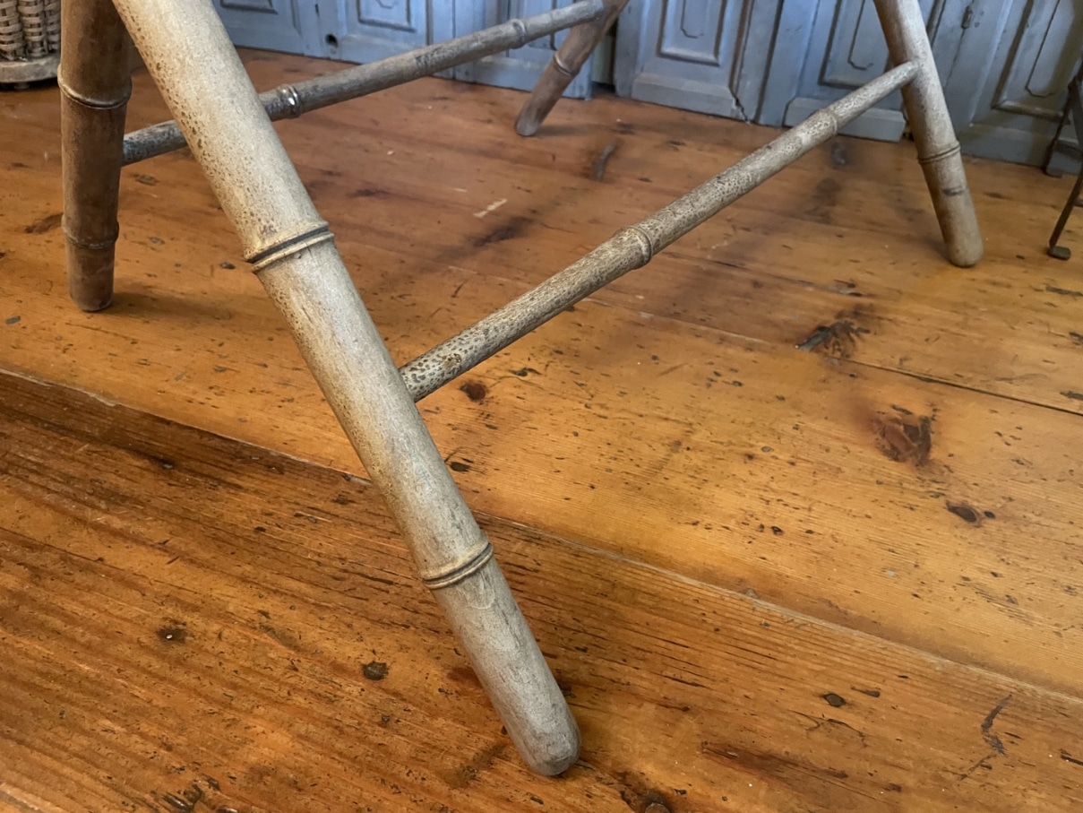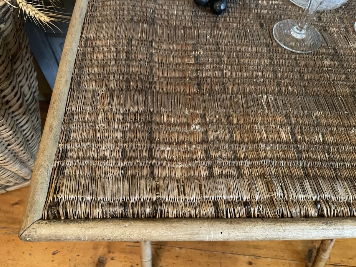 De onderkant van de tafel lijkt op bamboe maar is het niet. Faux bamboe zoals dit heet.