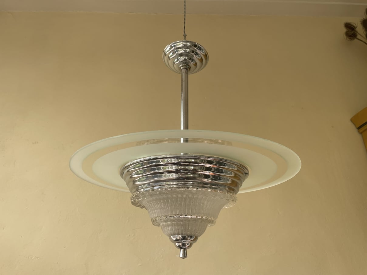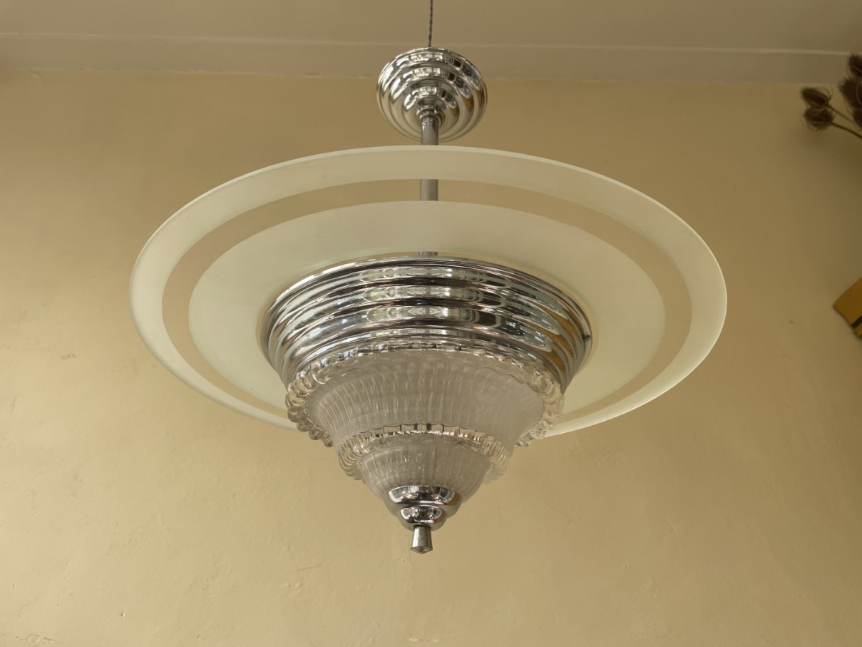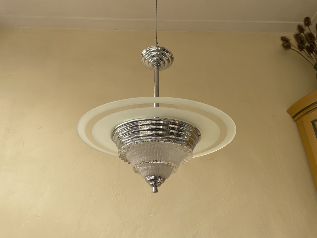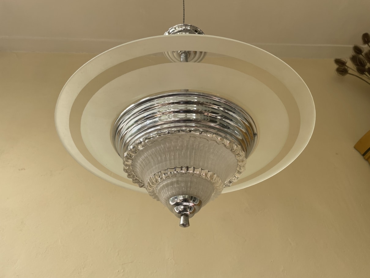 Mooie bijzondere hanglamp uit de periode art deco 1930 van Frankrijk.