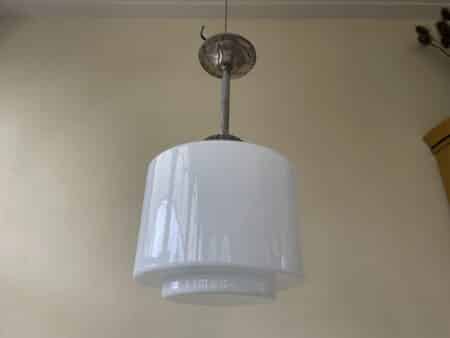 Een hanglamp met een grote bol van opaline uit de periode art deco 1930 van Frankrijk.
