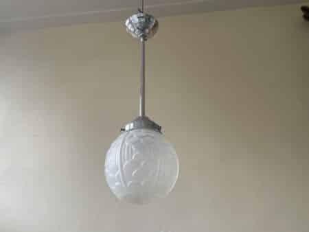De mooie gestileerde bol is van matglas en de pendel verchroomd met afsluiten een getrapt afdekplaatje wat tegen het plafond aan komt.