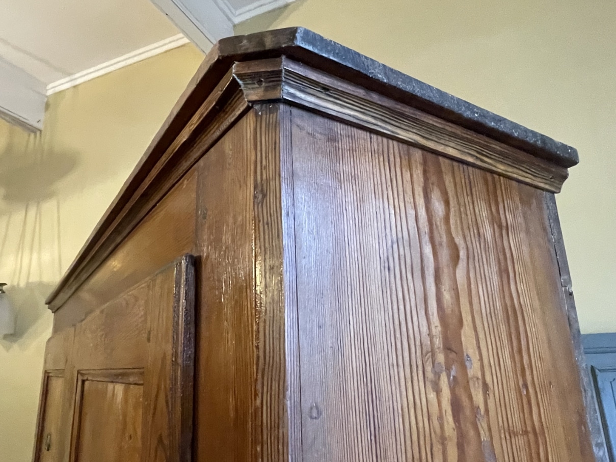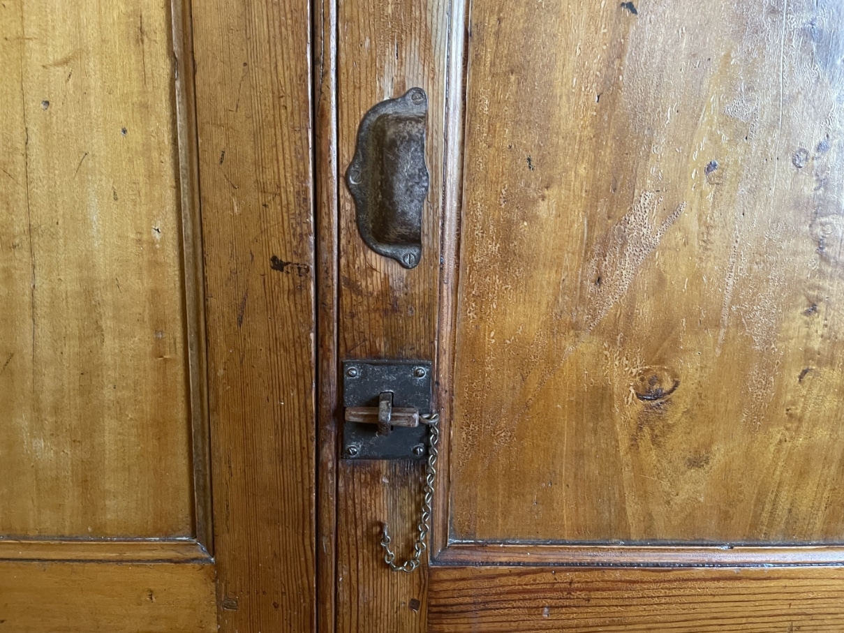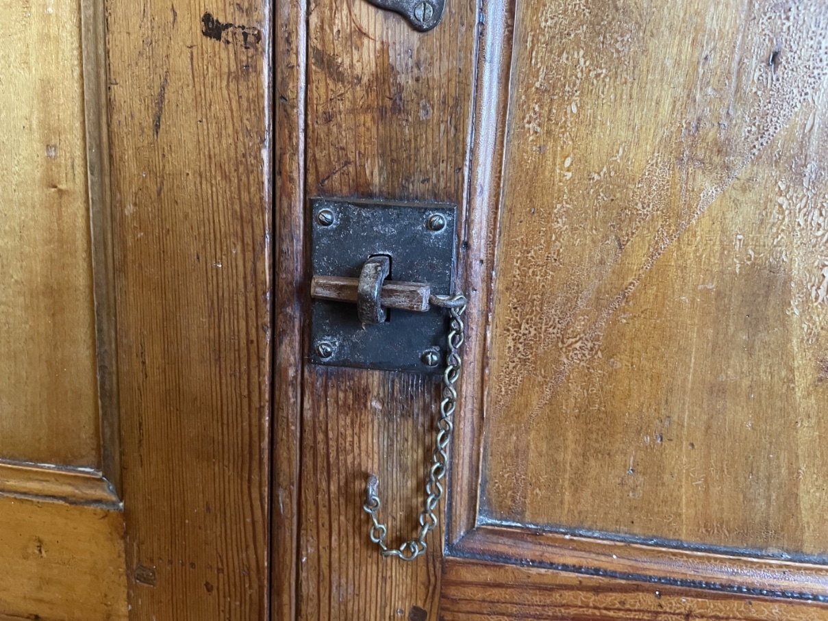 De kast is gemaakt van grenenhout wat na al die jaren een mooie warme sfeer heeft gekregen.