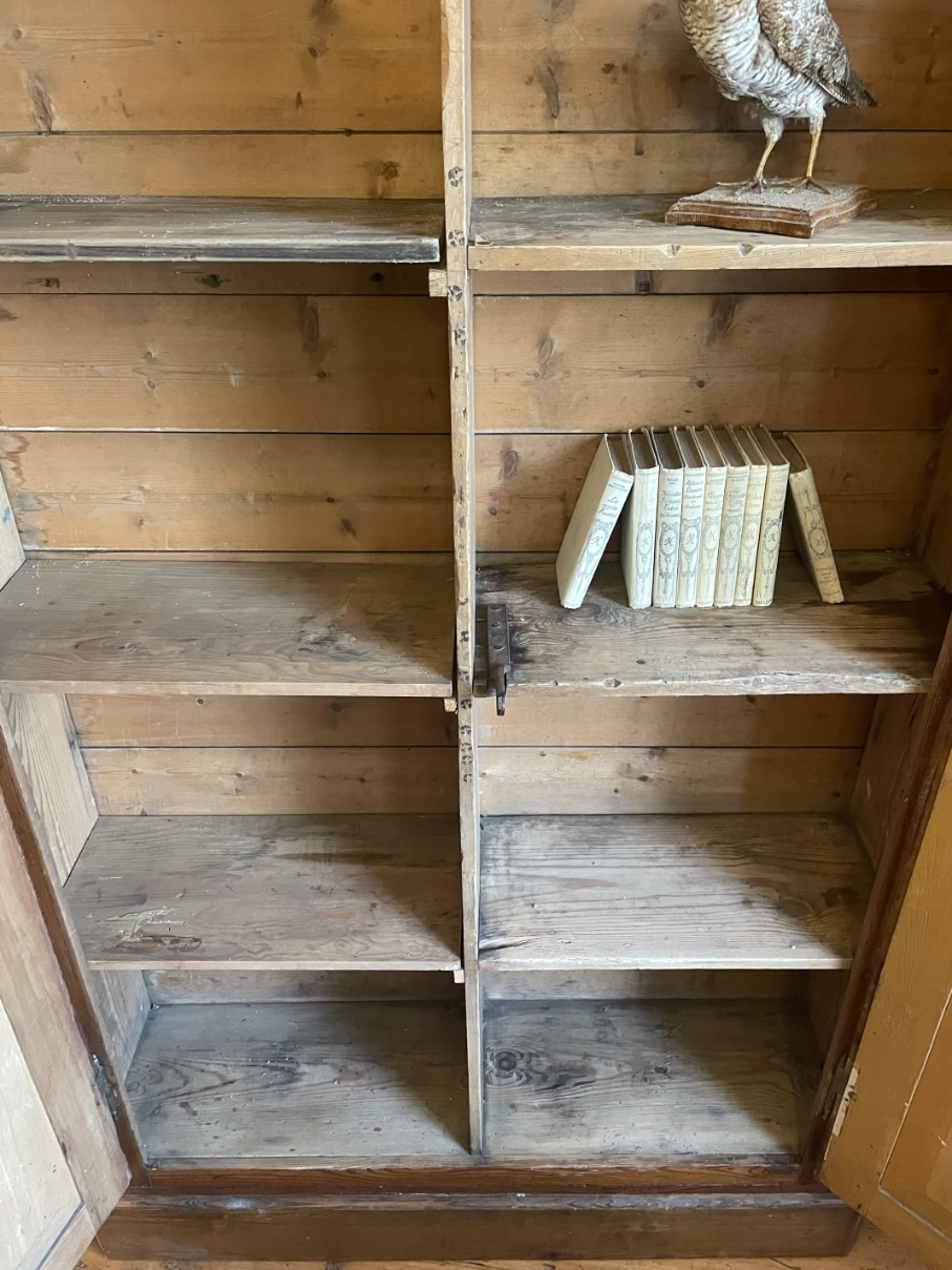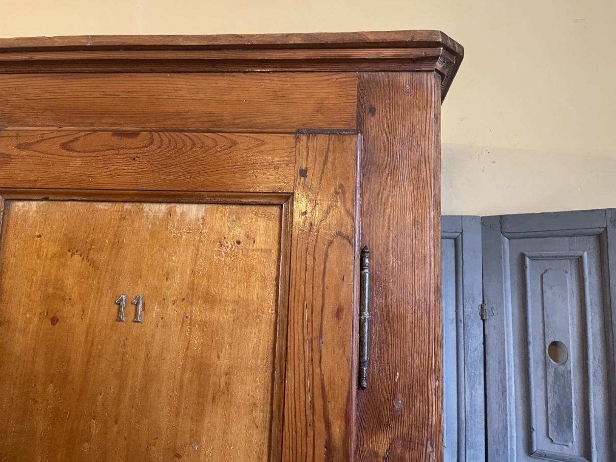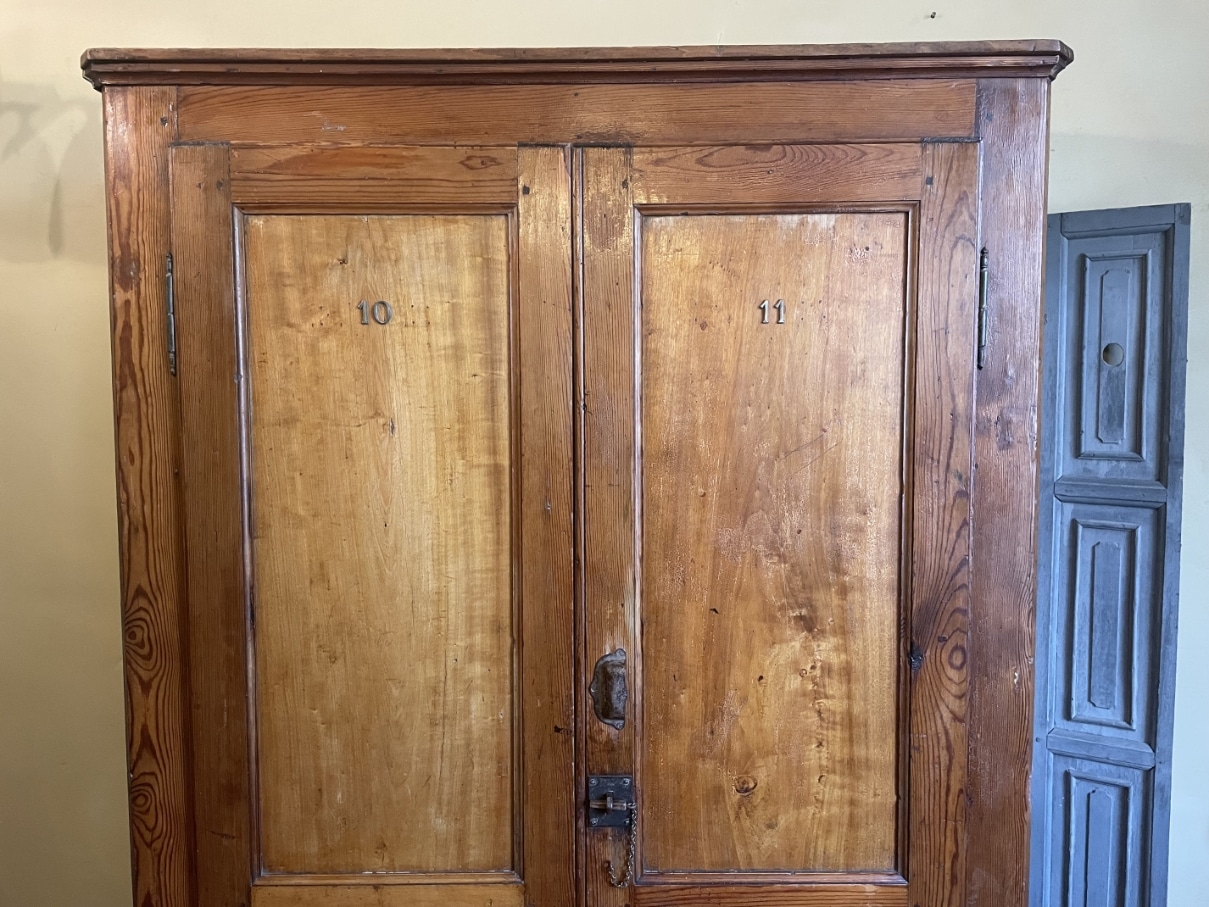 De kast is gemaakt van grenenhout wat na al die jaren een mooie warme sfeer heeft gekregen.