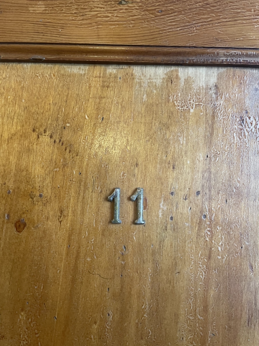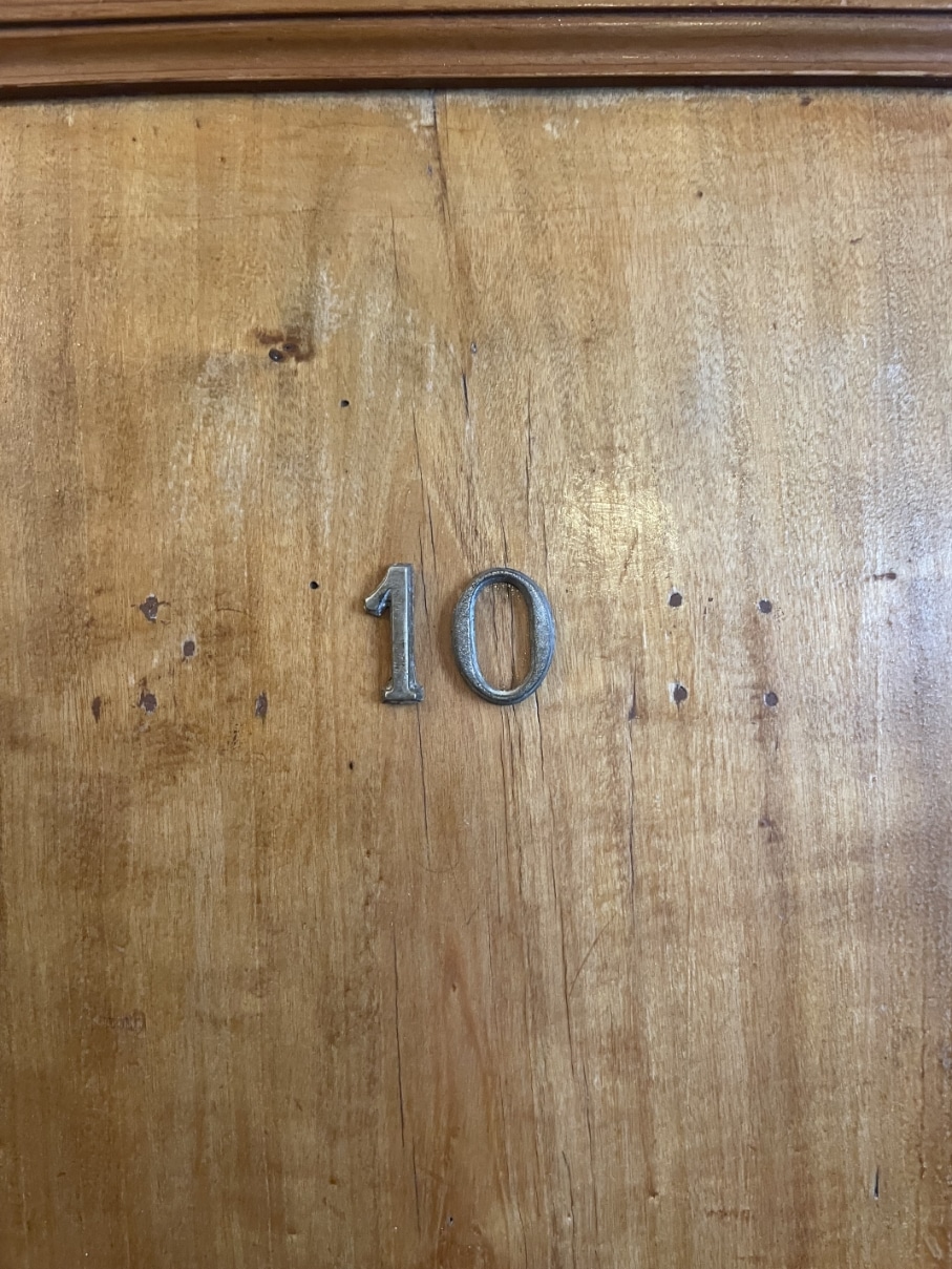 Op de buiten kant staan messing cijfers 10 en 11.