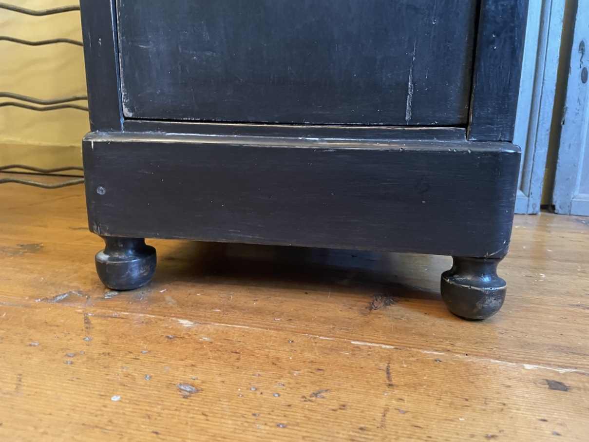 Het kastje staat ook op pootjes die aan de voorkant zijn rond.