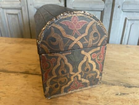 Een heel mooi oud hand beschilderd kistje in mooie kleuren.