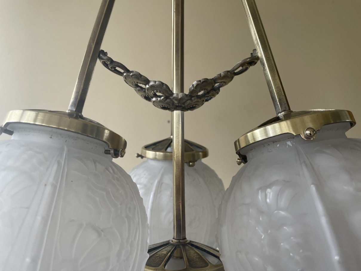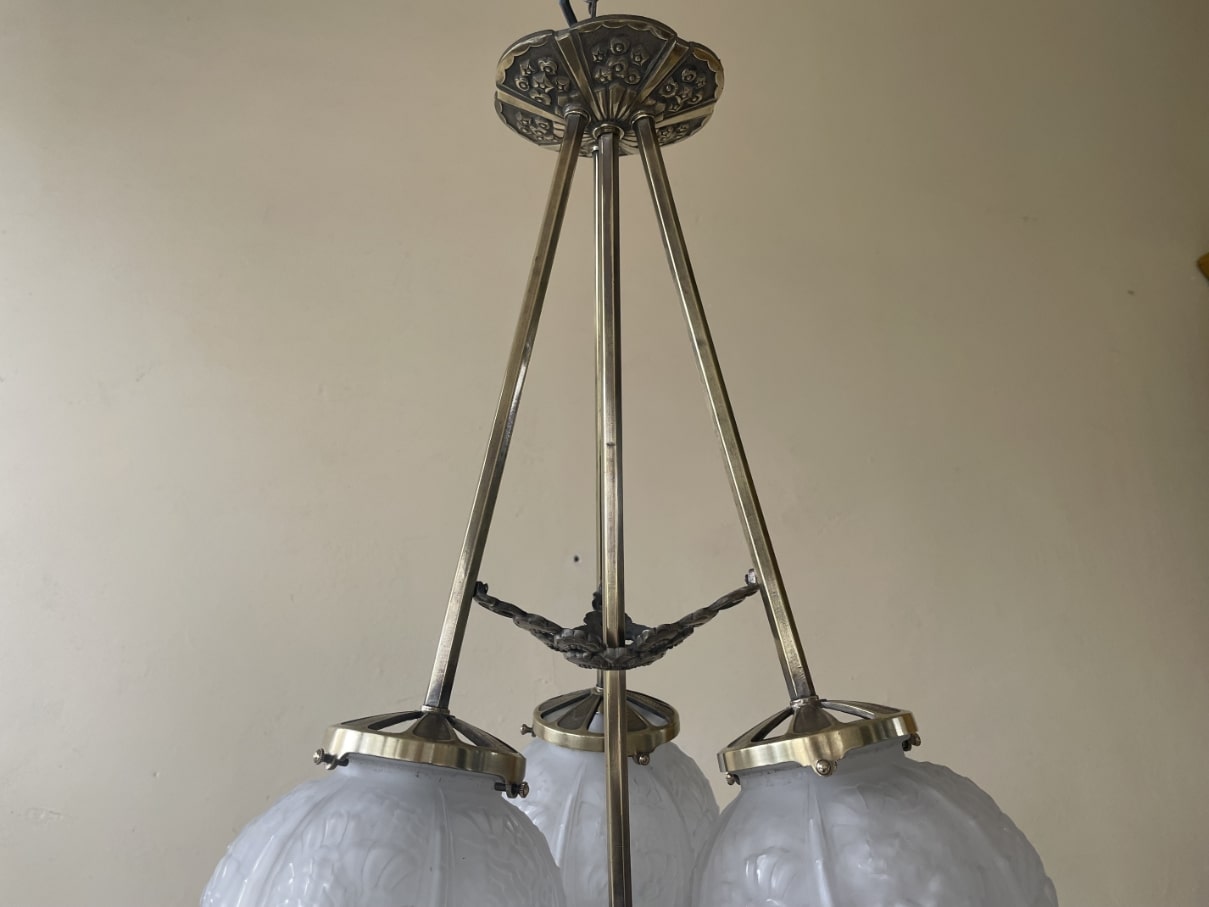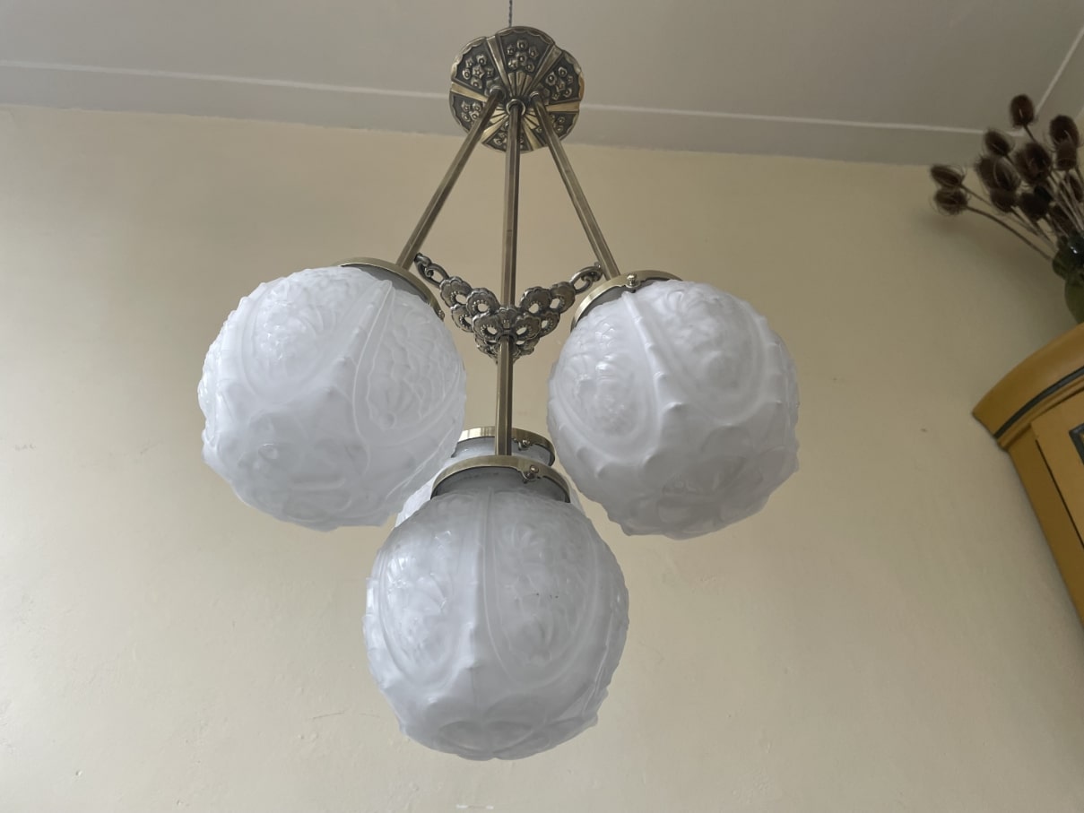 De lamp is op de kraag van elke bol gesigneerd met Cherrier & Besnus .