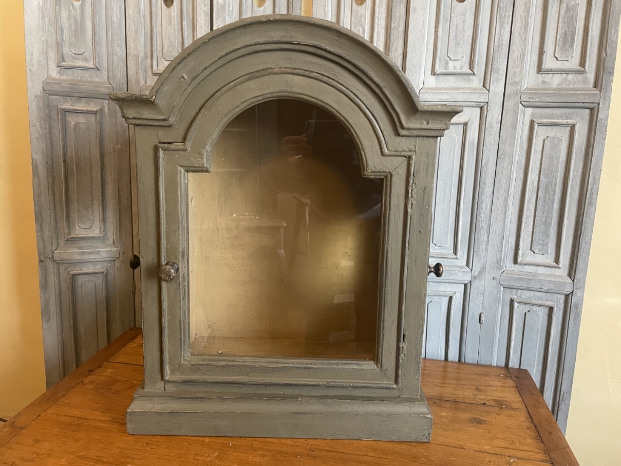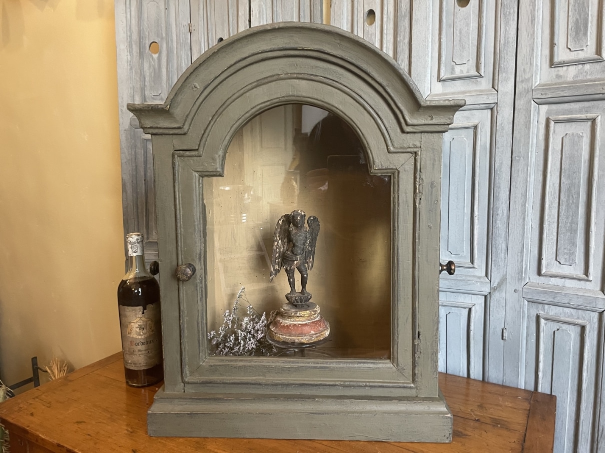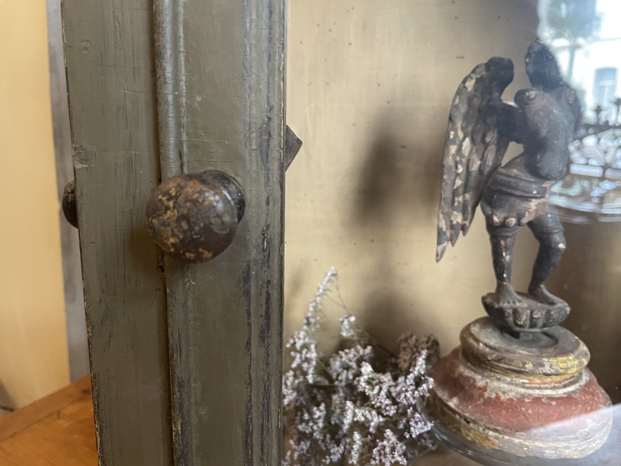 Een heel sfeervol 18e eeuws vitrinekastje uit Frankrijk.