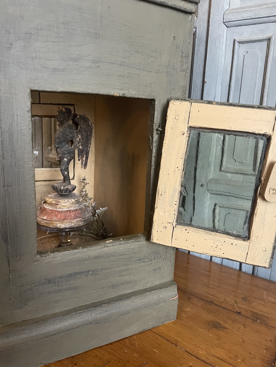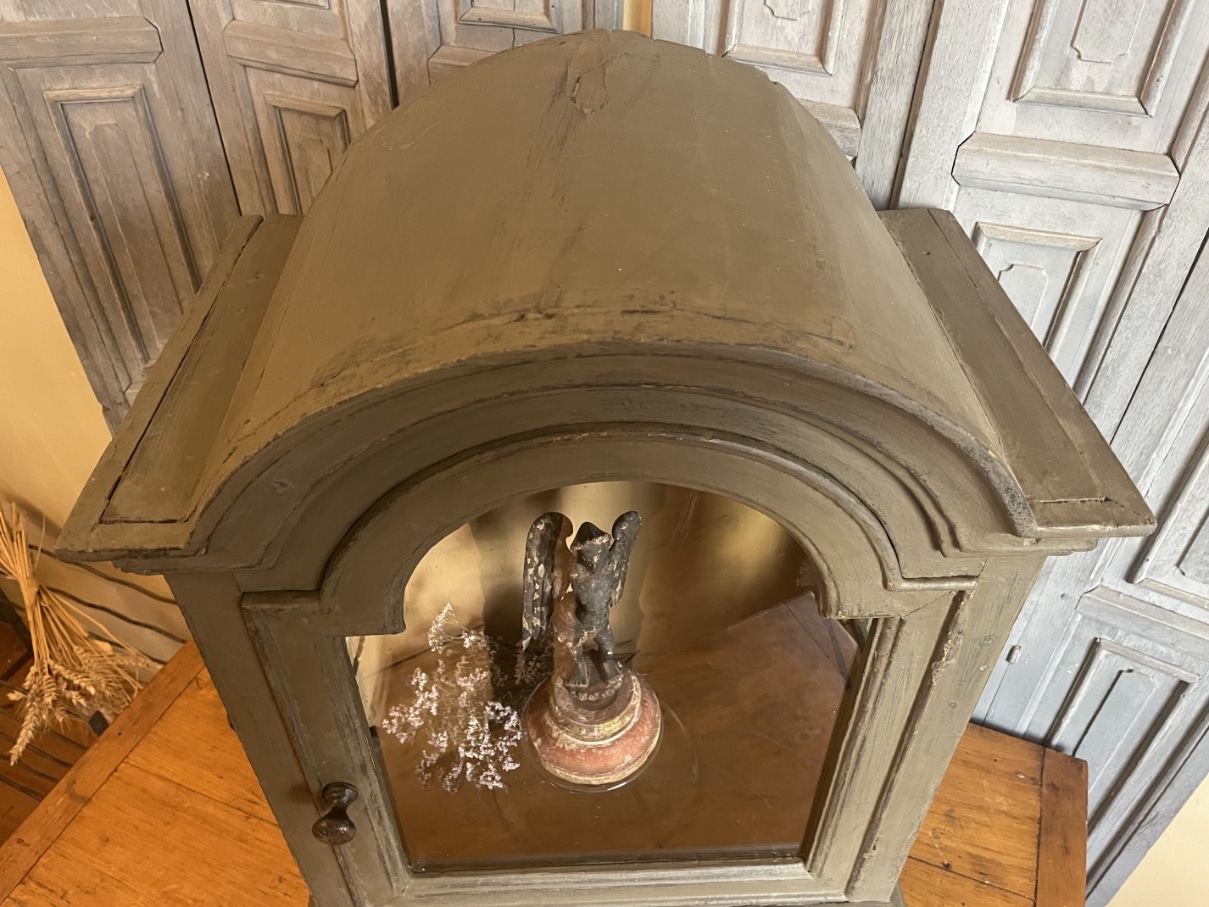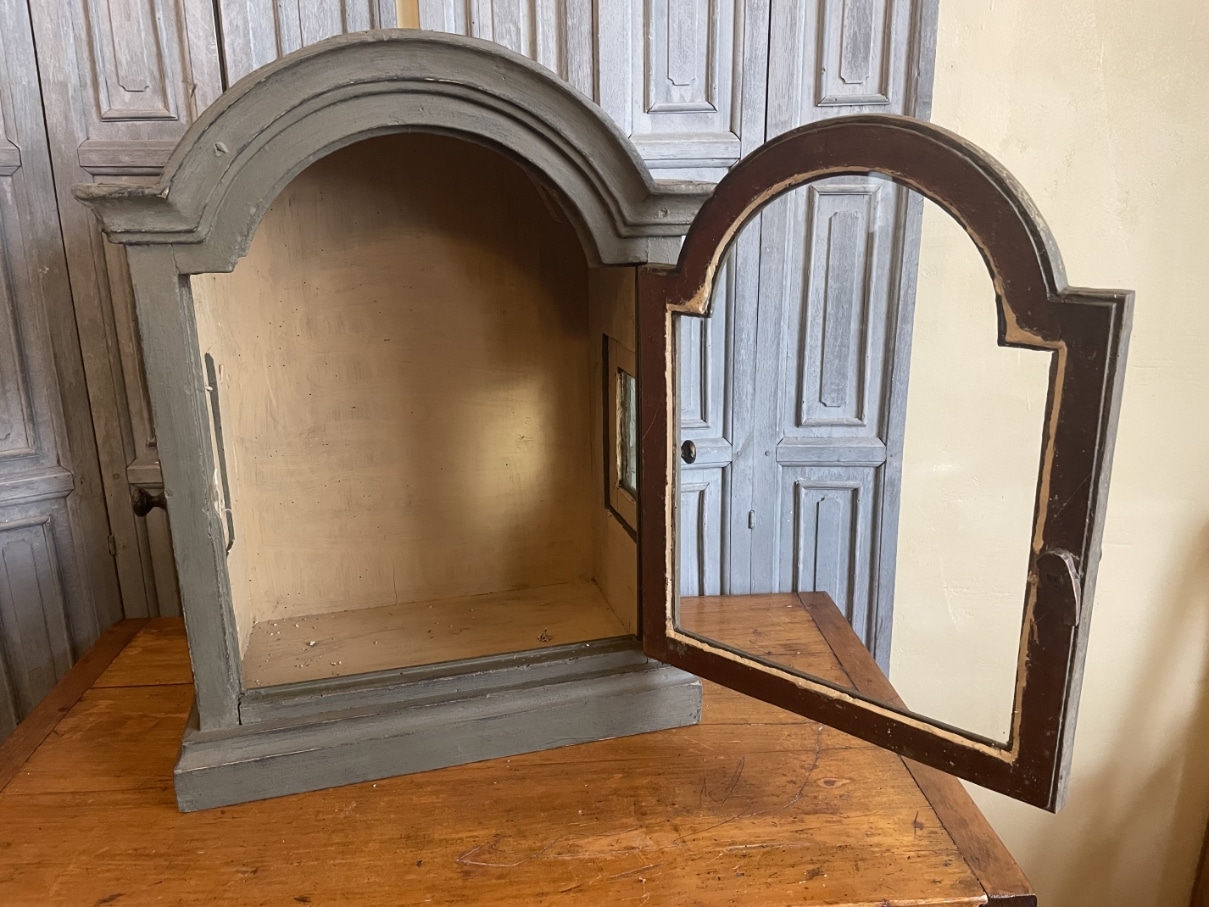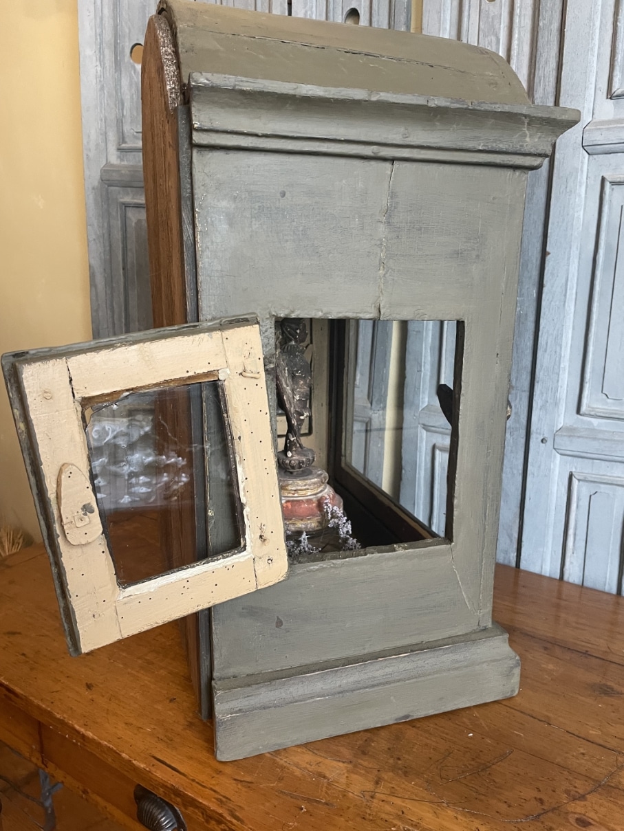 Een heel sfeervol 18e eeuws vitrinekastje uit Frankrijk.