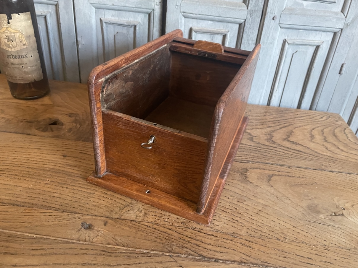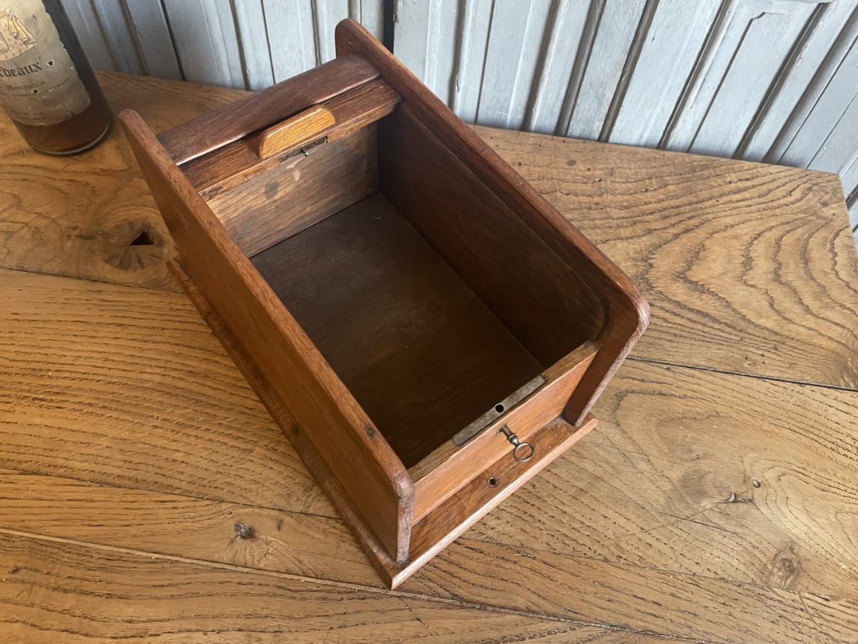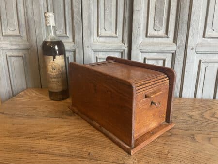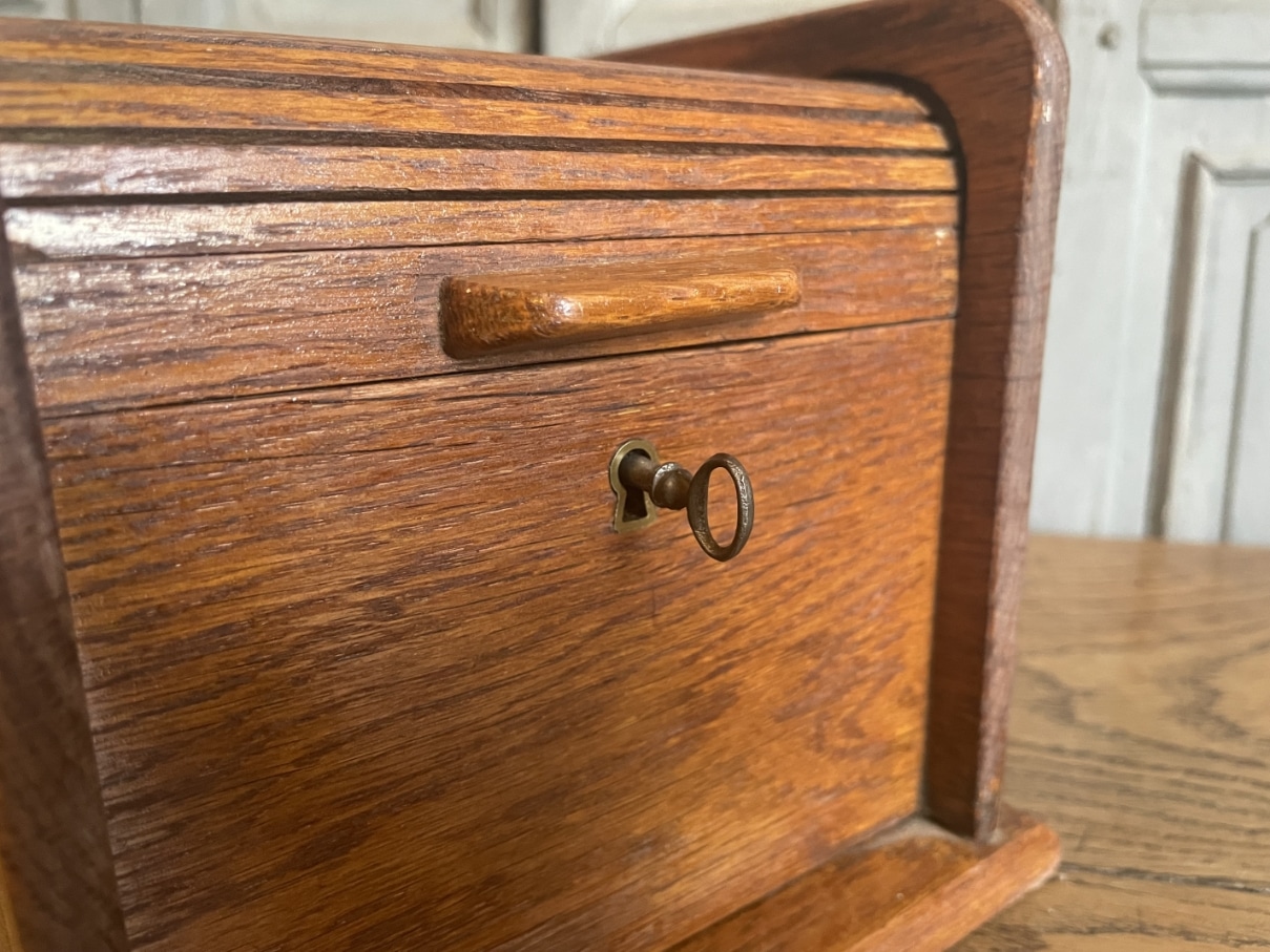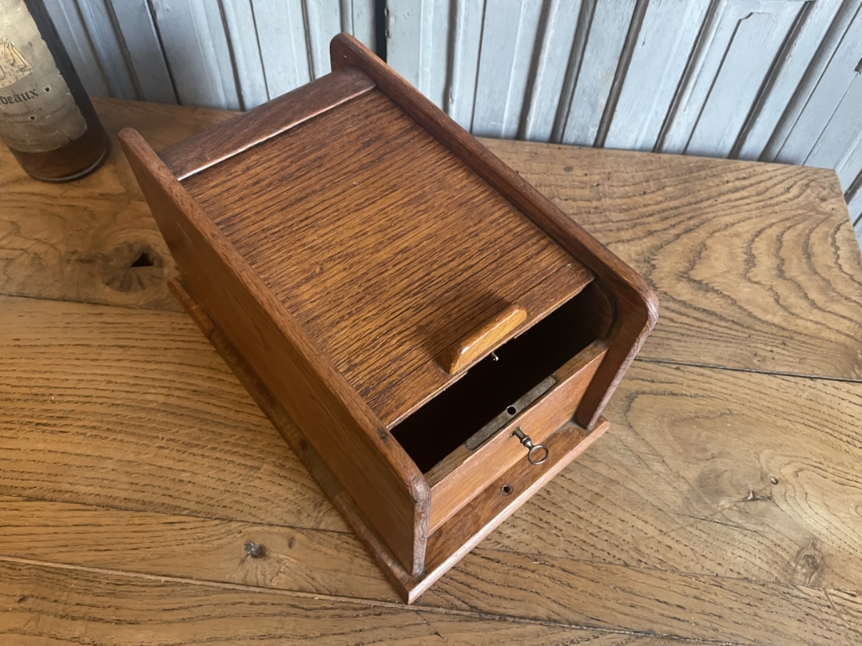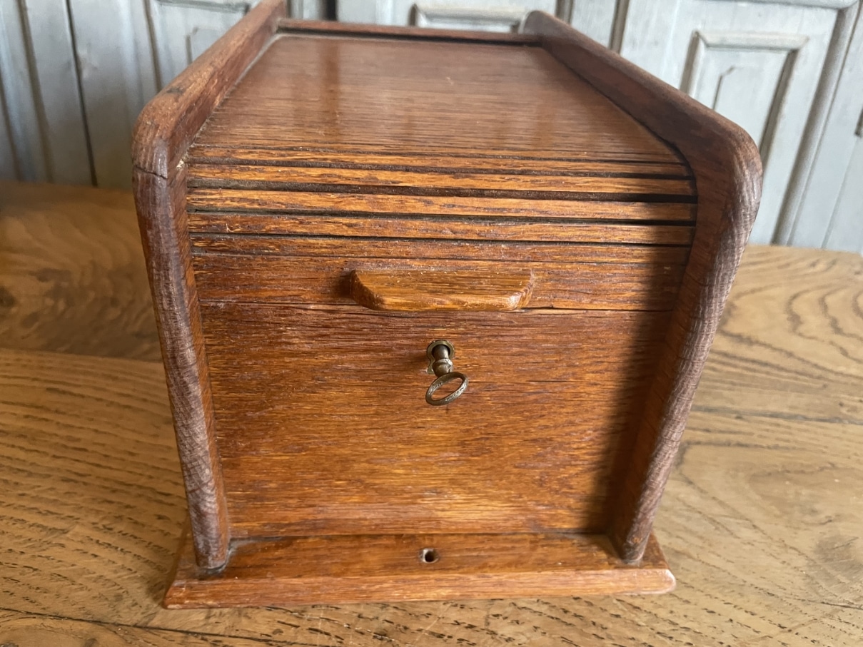 Een heel leuk eiken rolluik kastje of kistje voor oa op je bureau.