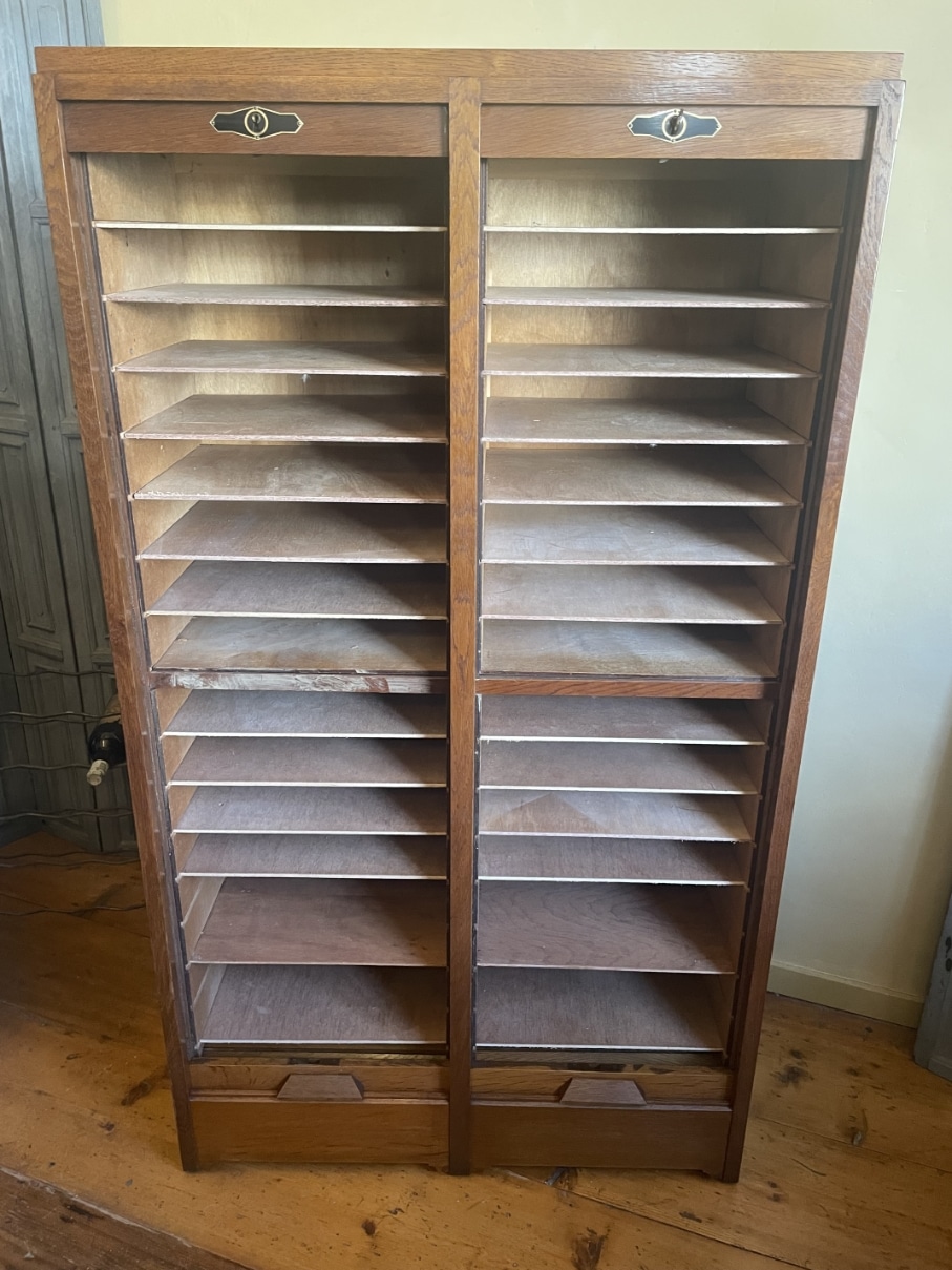 De kast is door ons in de werkplaats helemaal nagekeken en de luiken rollen heel goed.