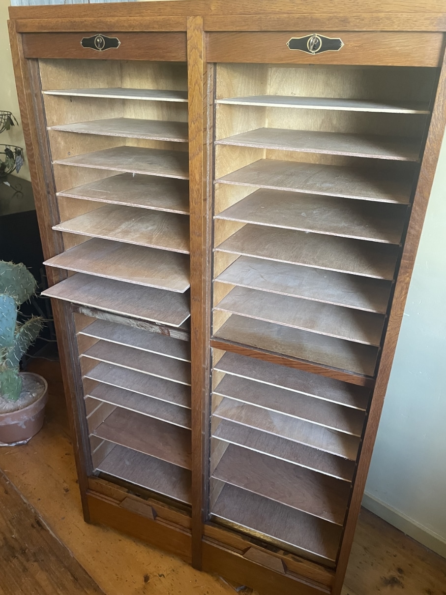 De kast dateert uit de jaren 60.
