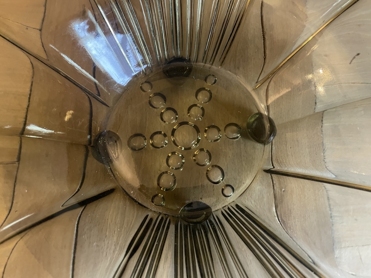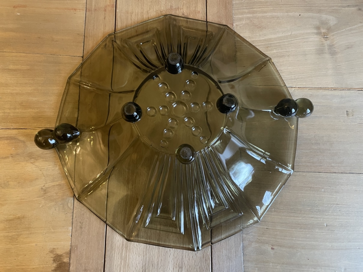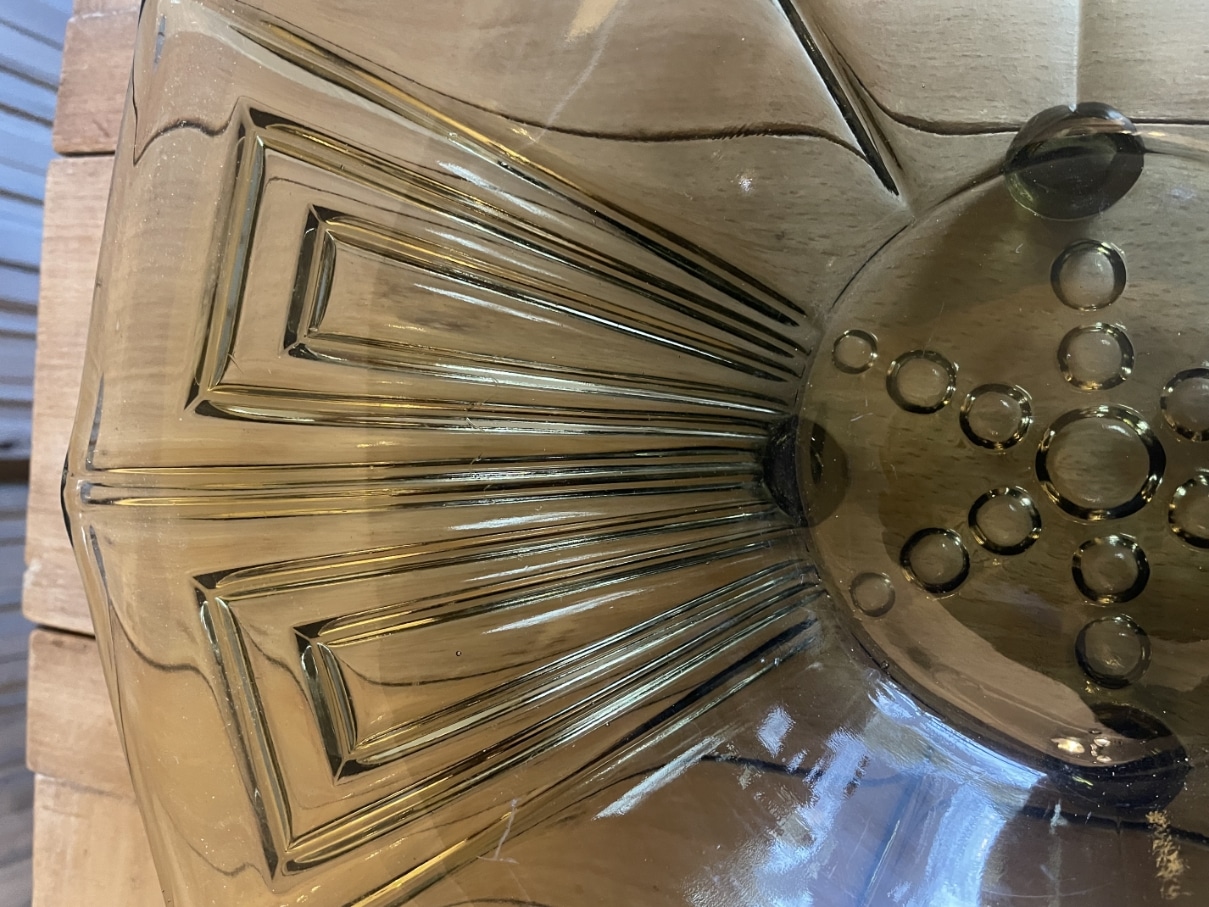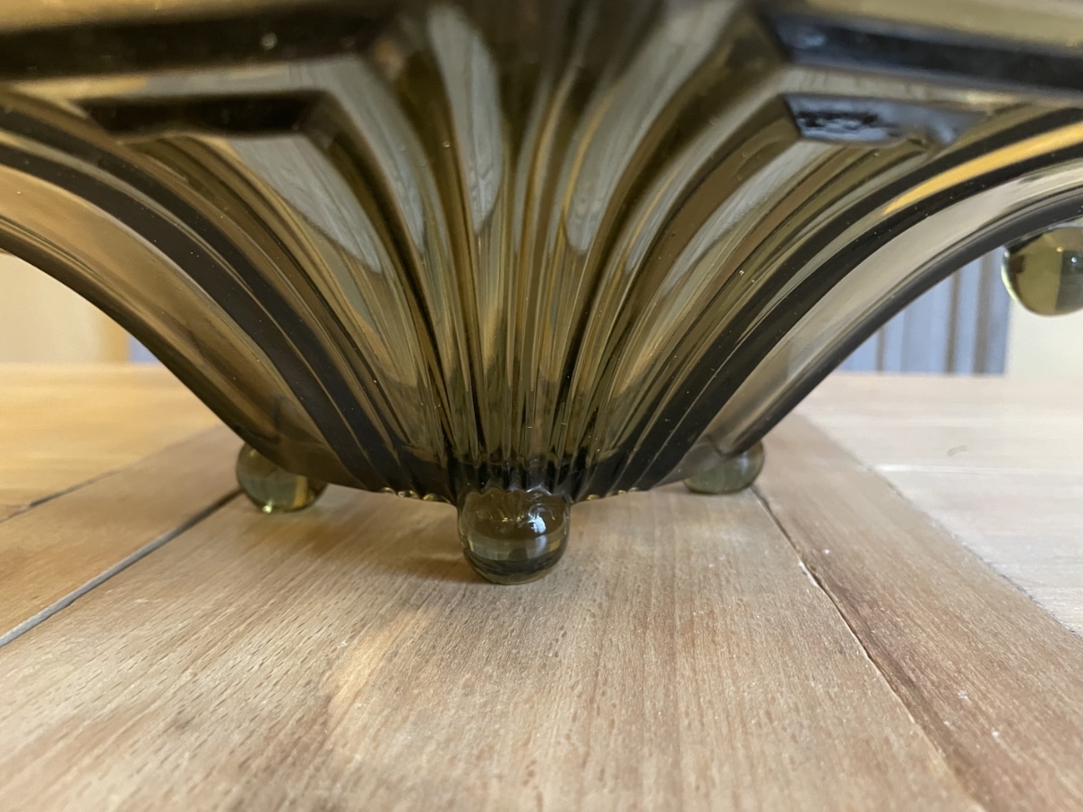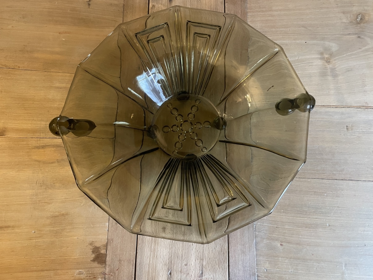 Een schitterende 12 kantige persglazen schaal uit de periode art deco 1930 Frankrijk.