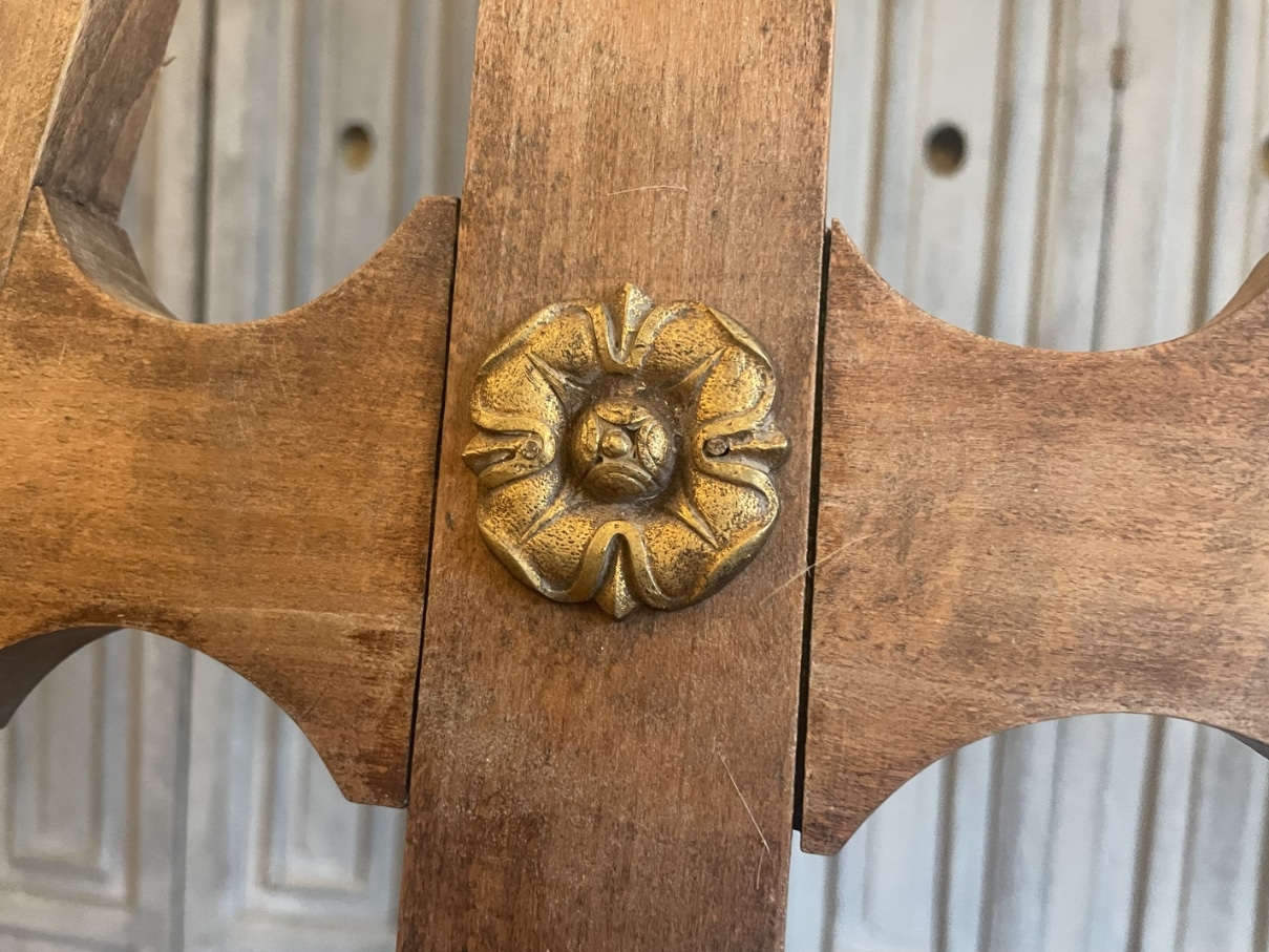 Mooi sierlijk met de Franse lelie in de top en versierd met houten ornamenten en boven in het midden een messing bloem.