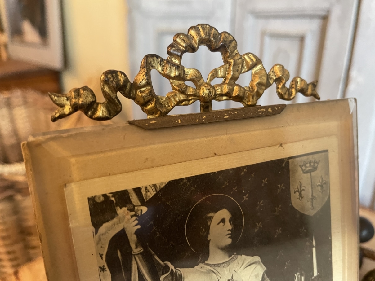 Een heel decoratief staand fotolijstje met een strik bovenop uit de periode 1900 van Frankrijk.