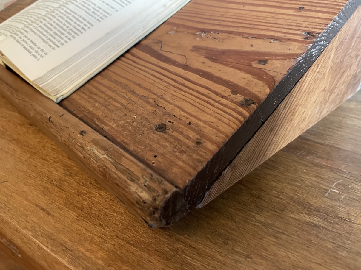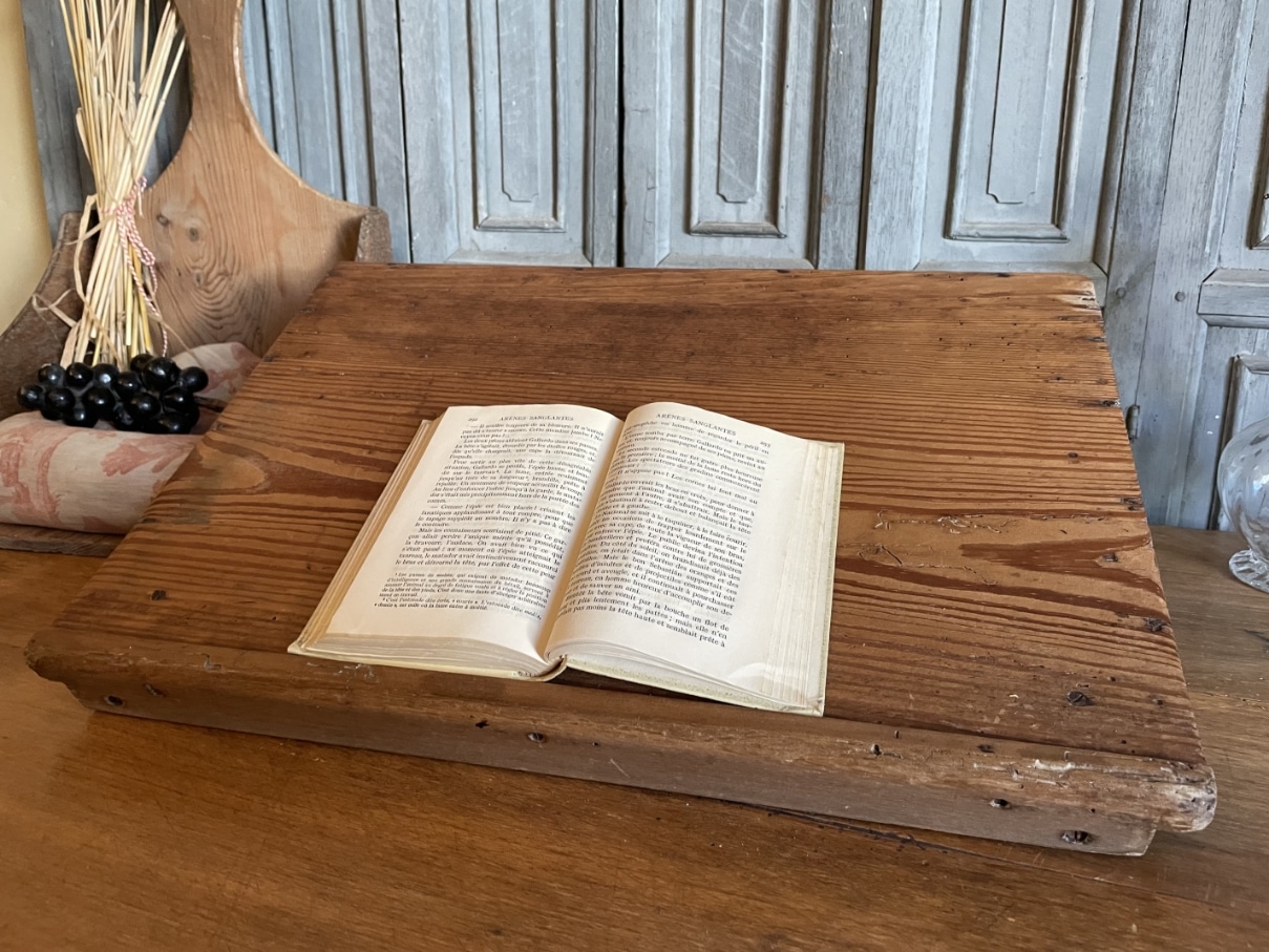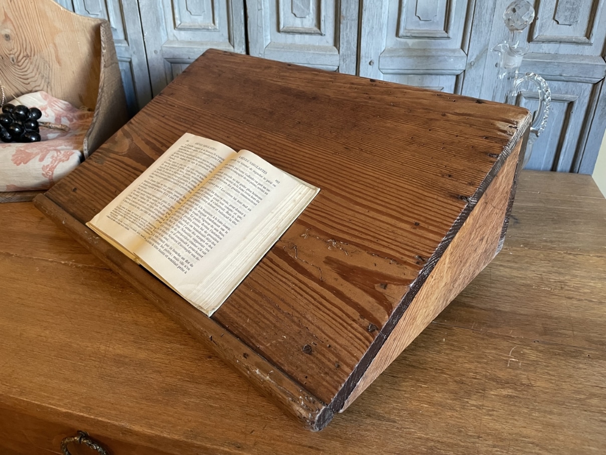 Een tafel lezenaar uit Frankrijk van heel mooi sfeervol grenenhout.