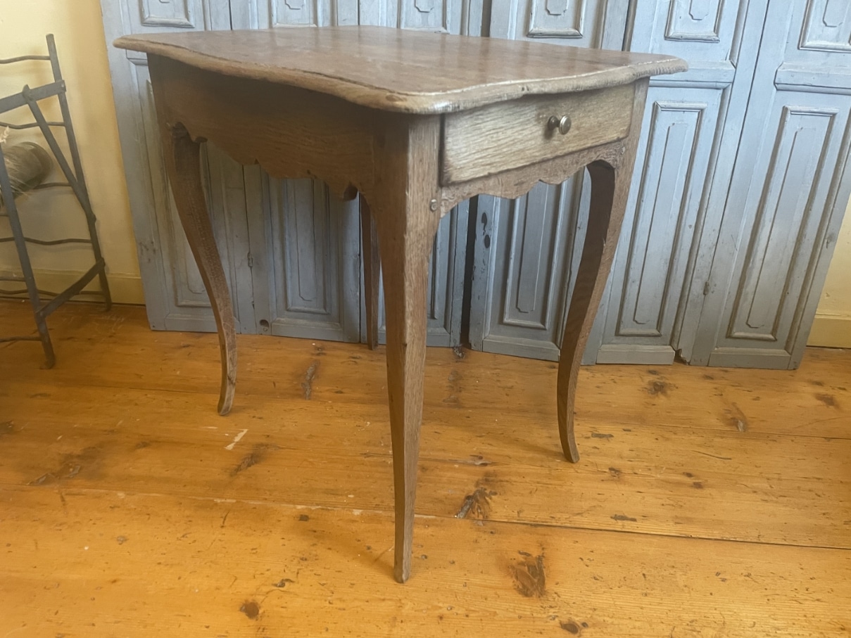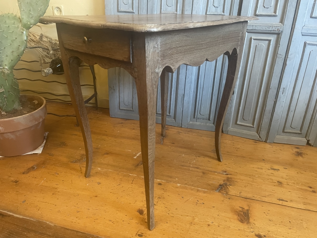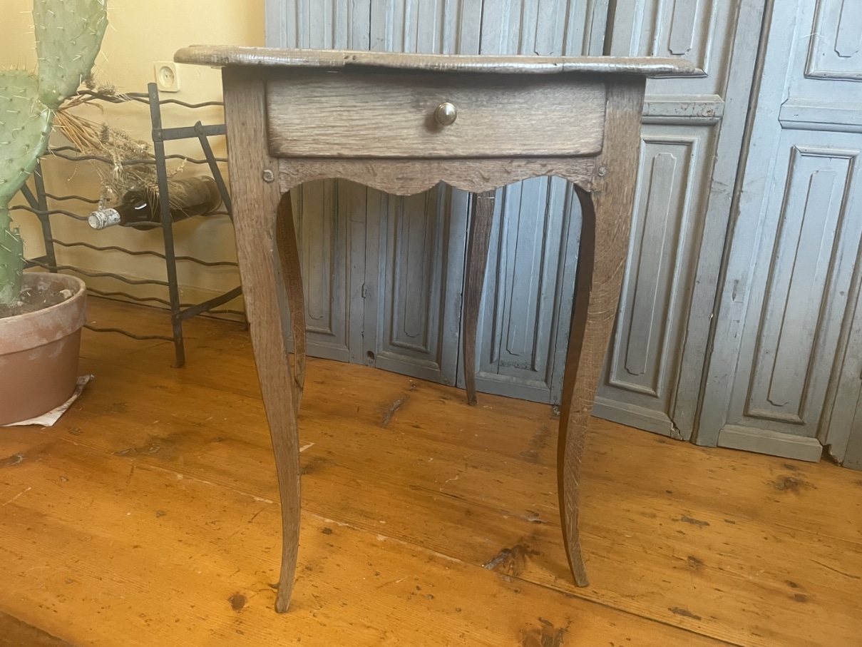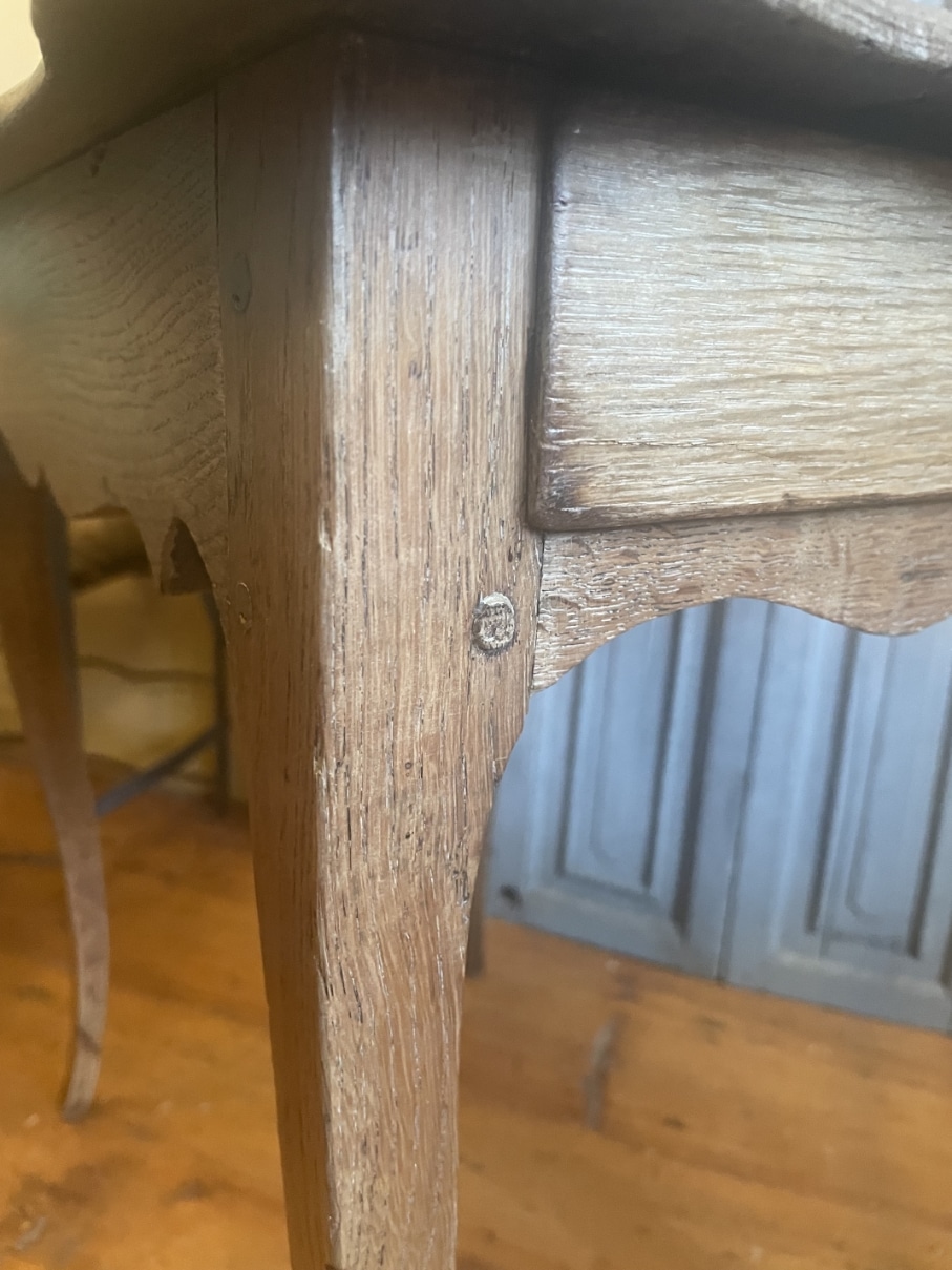 Aan een kopse kant zit een la met een messing knopje.