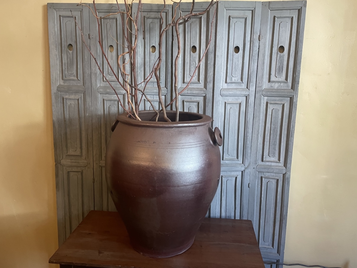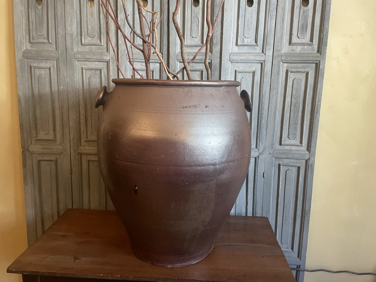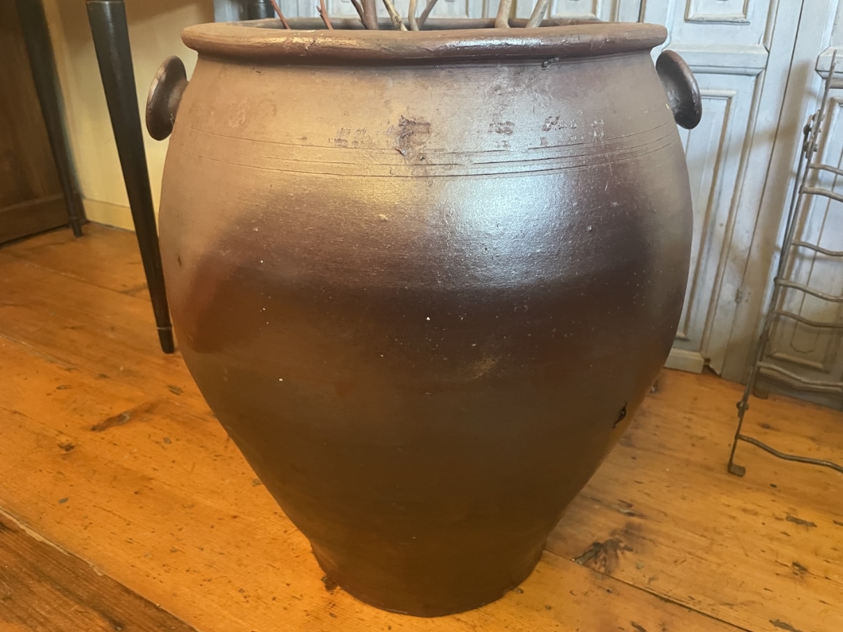 Mooie grote confit pot waar bv zuurkool of andere groenten of vlees wat in pekel werd geconserveerd.