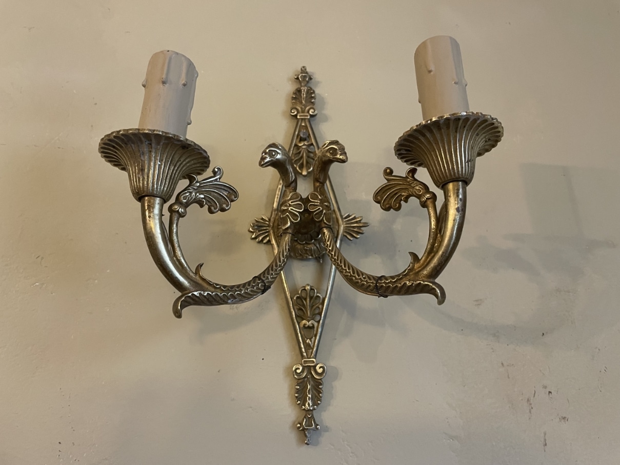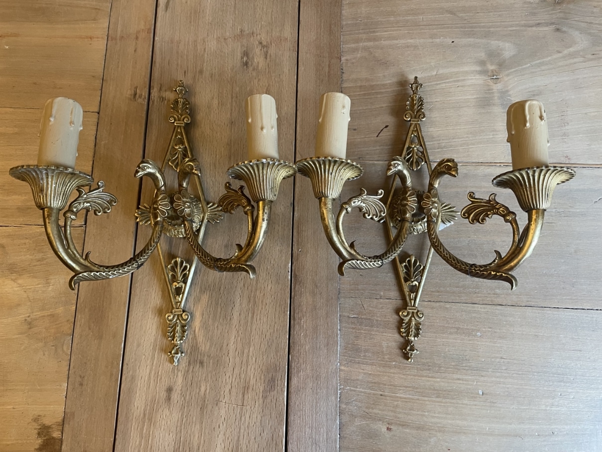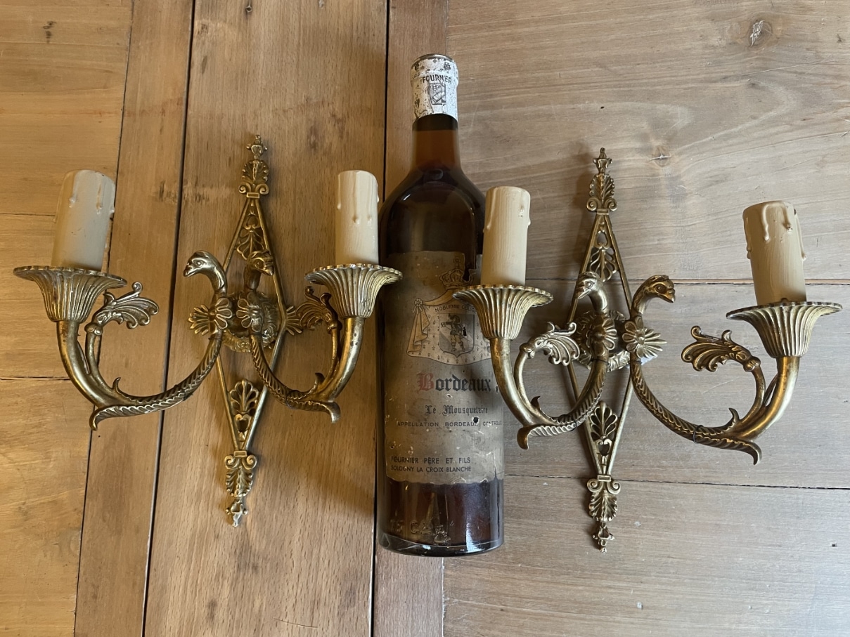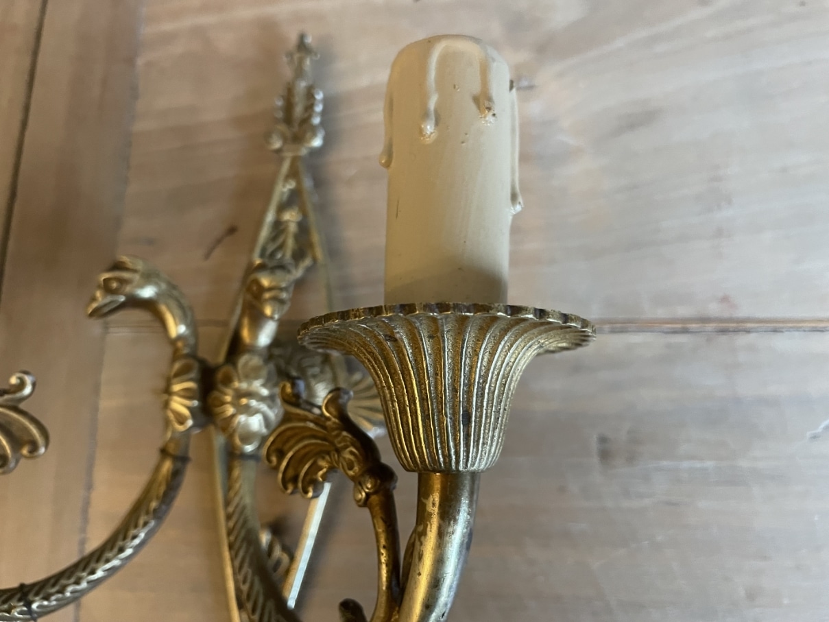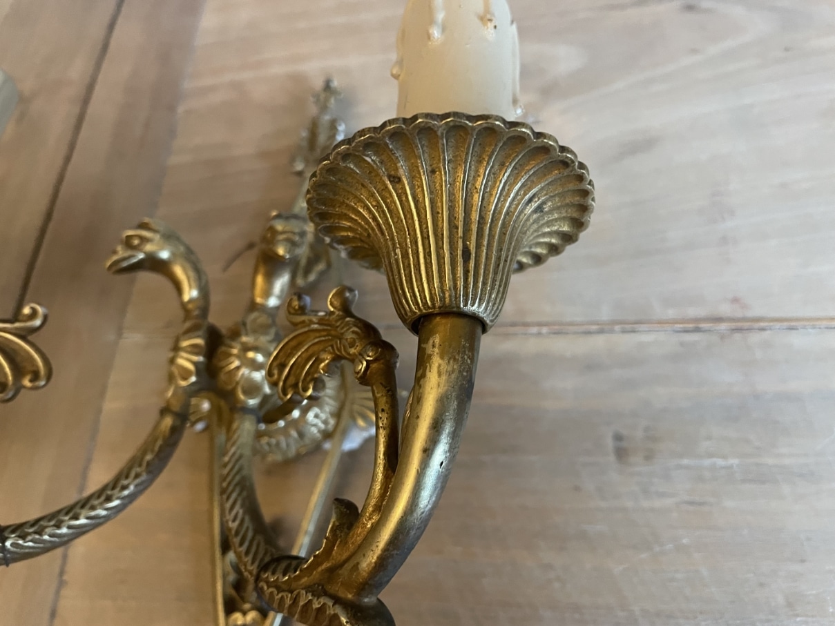 Een set 19e eeuws wandlampen uit Frankrijk in Empire stijl uitgevoerd.