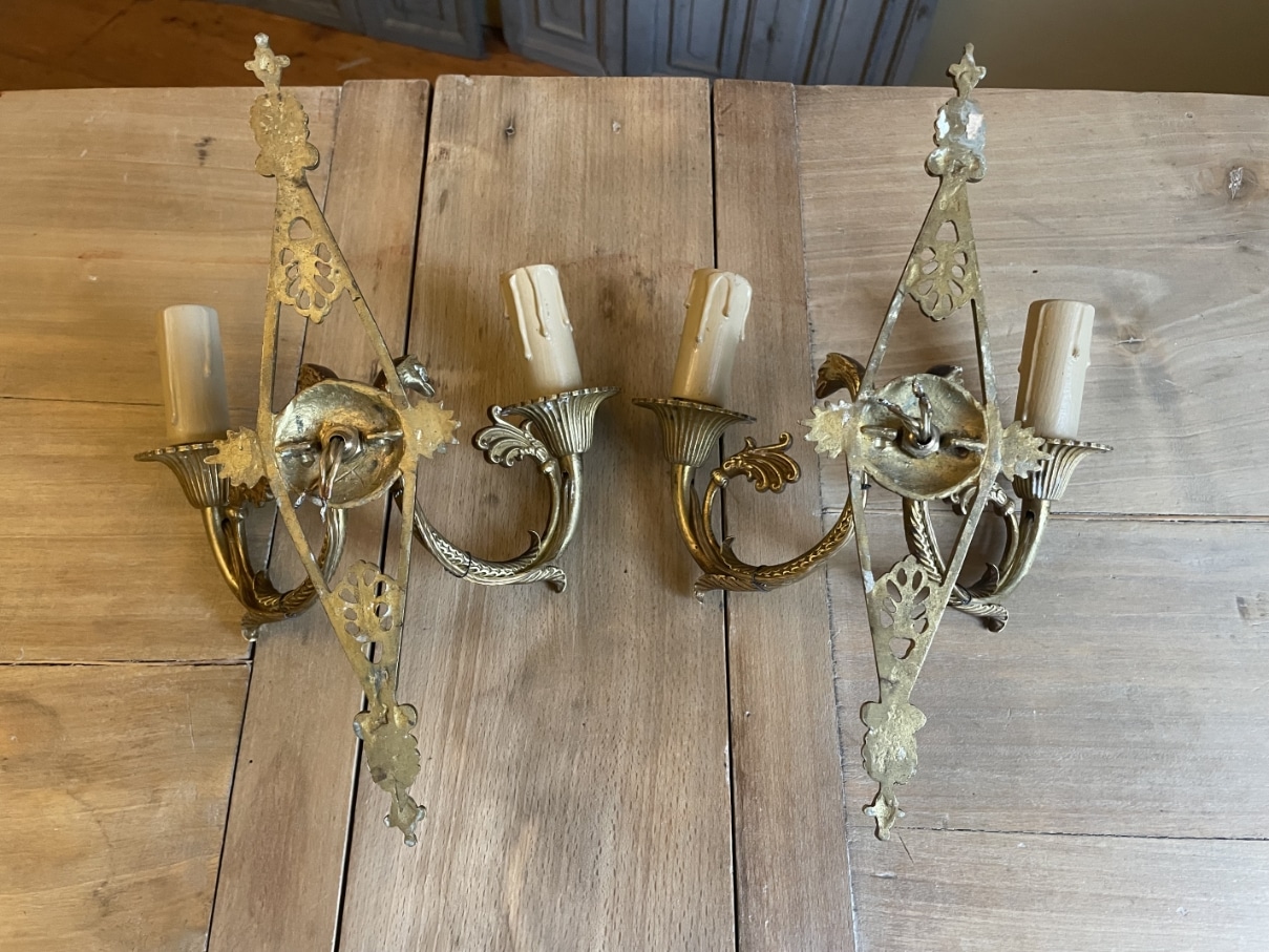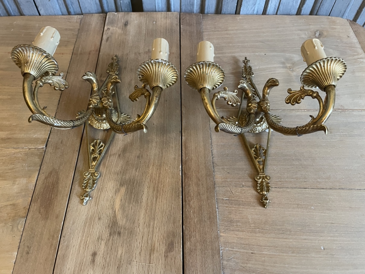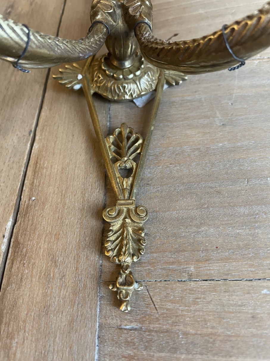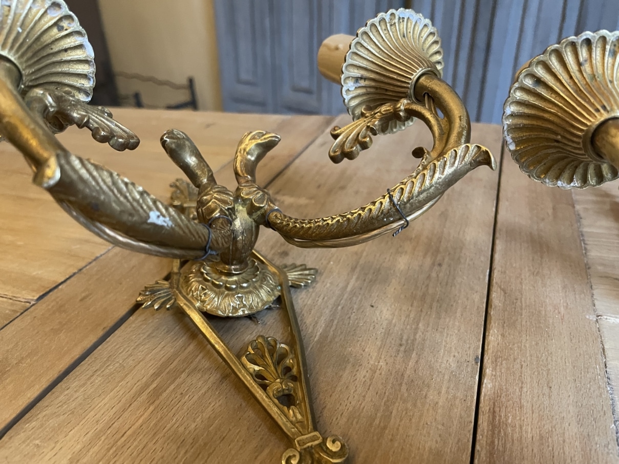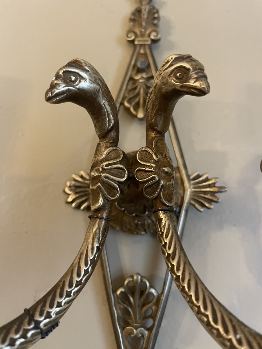 Een set 19e eeuws wandlampen uit Frankrijk in Empire stijl uitgevoerd.