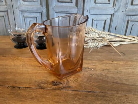 Een zalm kleurige water karaf uit de periode Art Deco 1930 Frankrijk.